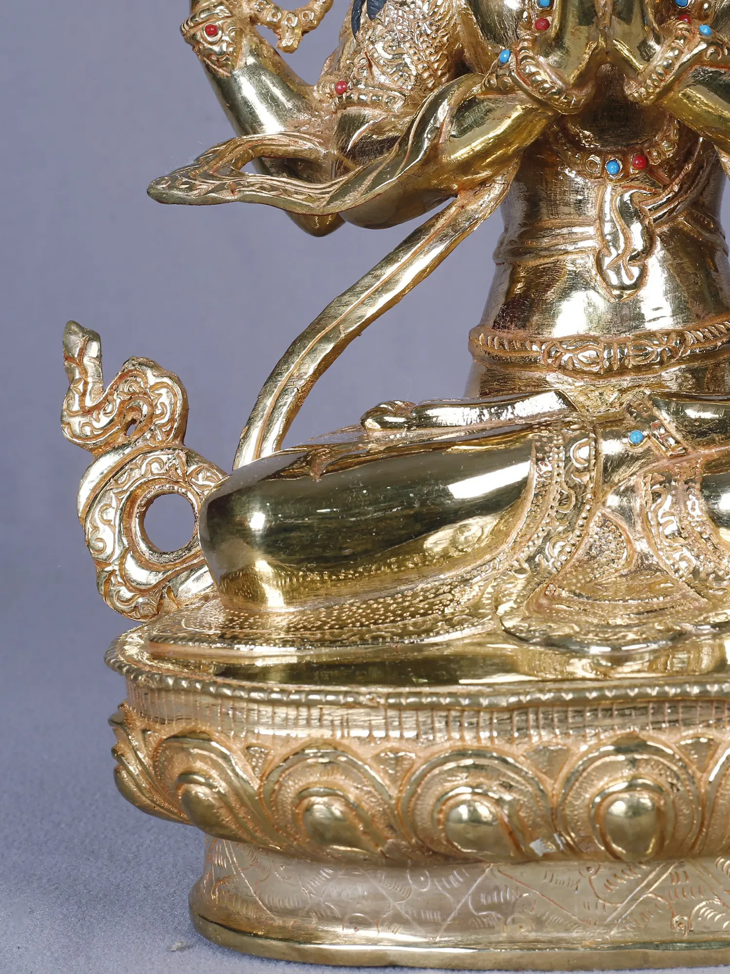 Lord Manjushree Buddhist Deity Idol | Copper with Gold and Silver Plated | Handmade Exquisite Art