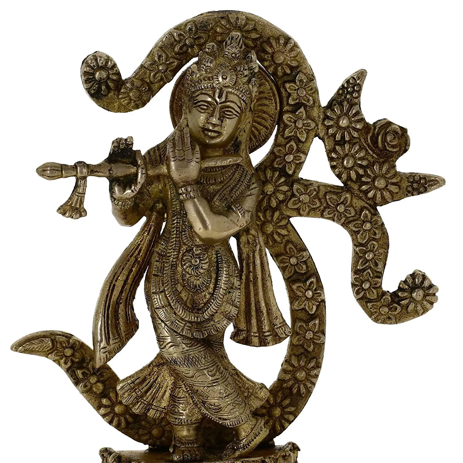 Surrounding Lord Krishna is the universally revered symbol of Om (or Aum). This sacred syllable represents the primordial sound of creation, the essence of the ultimate reality. In this statue, the Om symbol is not merely a backdrop but an integral part of the divine composition, intricately adorned with delicate floral patterns. The entwined Om signifies the omnipresence of the divine and Krishna's inherent connection to the cosmic rhythm. It is believed that the sound of Om can align one's inner consciousness with the universe, fostering peace and spiritual harmony.