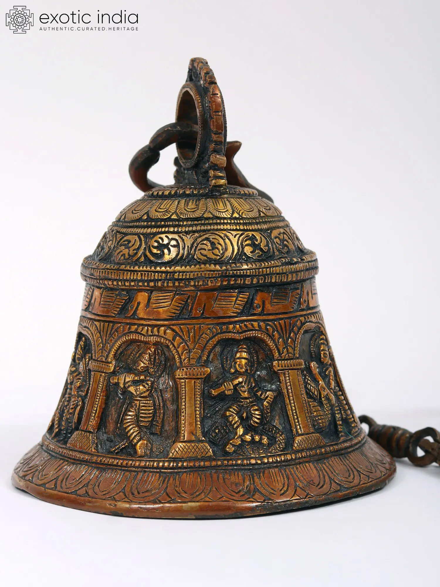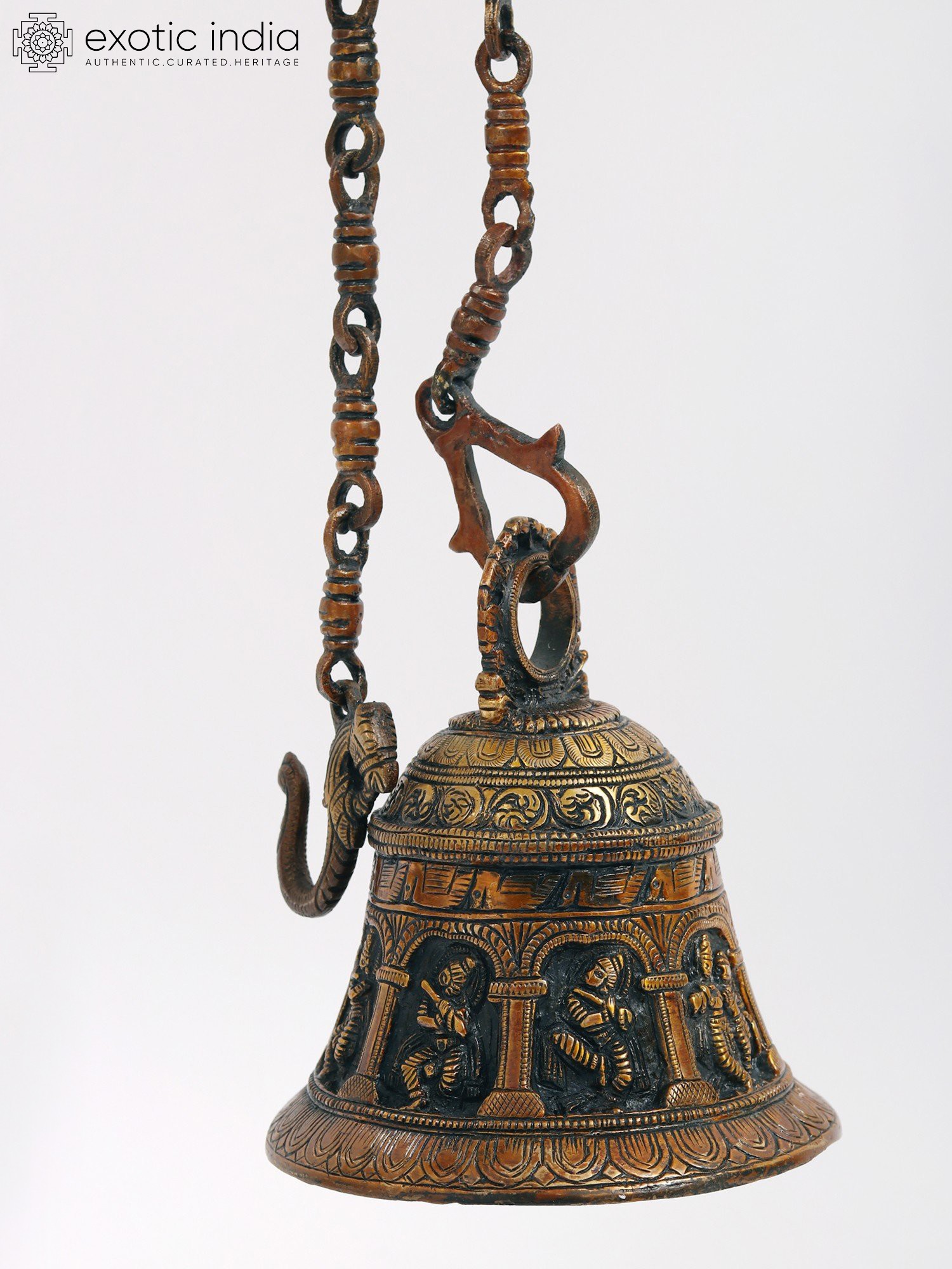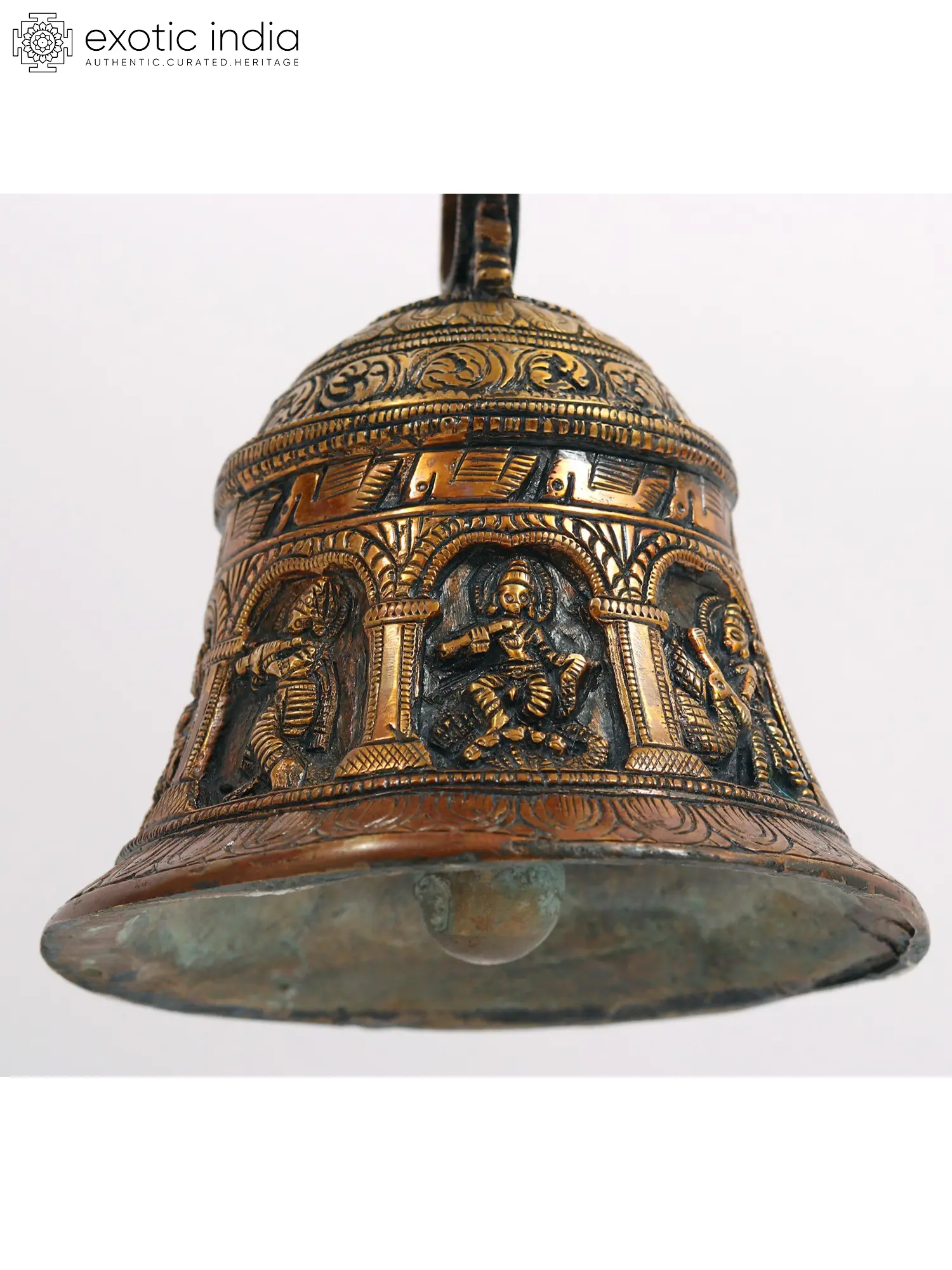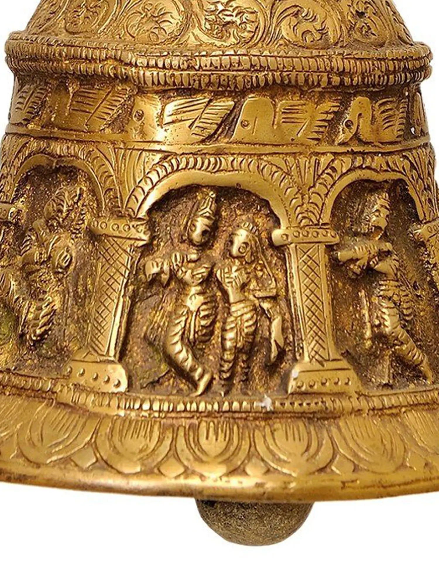 This bell celebrates the vivid and enthralling tales of Lord Krishna in a material and resonant form, in addition to acting as a melodious call to prayer.
