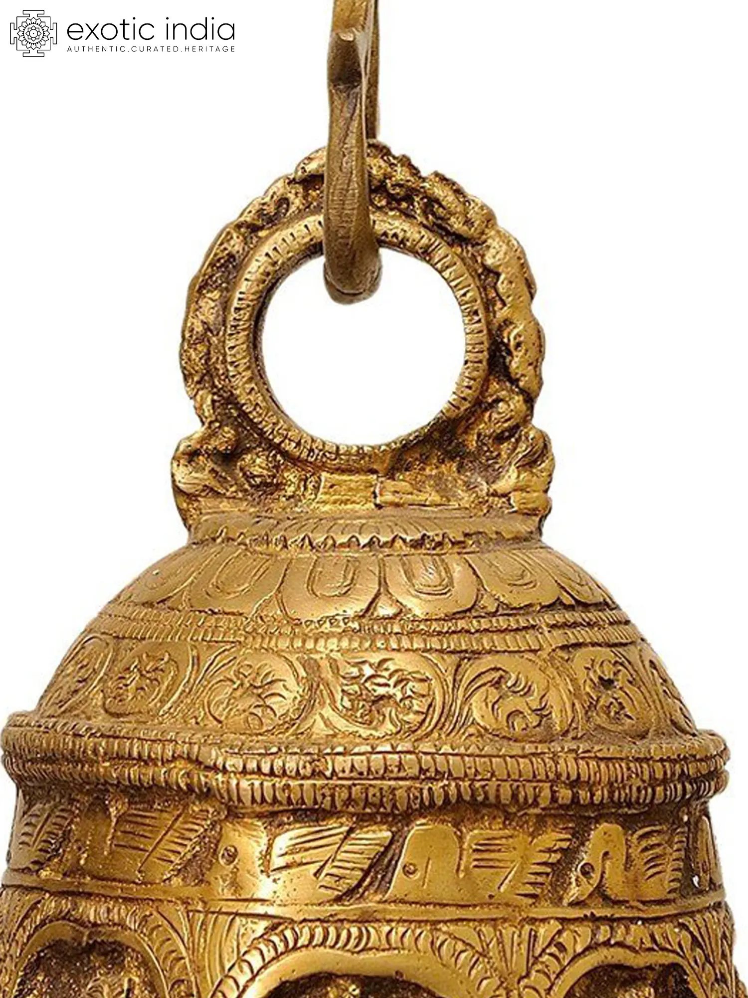 The bell's visual appeal is enhanced by additional carefully crafted rings lavishly adorned with bael butas.