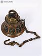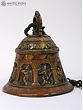 With its exquisite features, this brass hanging bell from the Shri Krishna temple is a stunning handcrafted work. It depicts the enthralling stories of Lord Krishna's holy existence inside square panels.