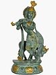 Crafted from durable brass, this statue is a masterpiece of traditional Indian artistry. The patina gives it an antique allure, hinting at the timeless stories and spiritual wisdom it represents. The detailed embellishments, particularly the golden accents on the headdress, flute, and attire, add a touch of regal splendor to the divine figure. Such representations of Lord Krishna are central to Hindu worship and are often found in homes, temples, and meditation spaces, serving as a focal point for devotion, contemplation, and the invocation of peace and prosperity. Owning this statue is not just acquiring a decorative piece; it is inviting the divine presence and the benevolent spirit of Lord Krishna into your life. The gentle curves and balanced composition of the statue evoke a sense of serenity and spiritual upliftment, making it a treasured addition to any sacred space or collection.