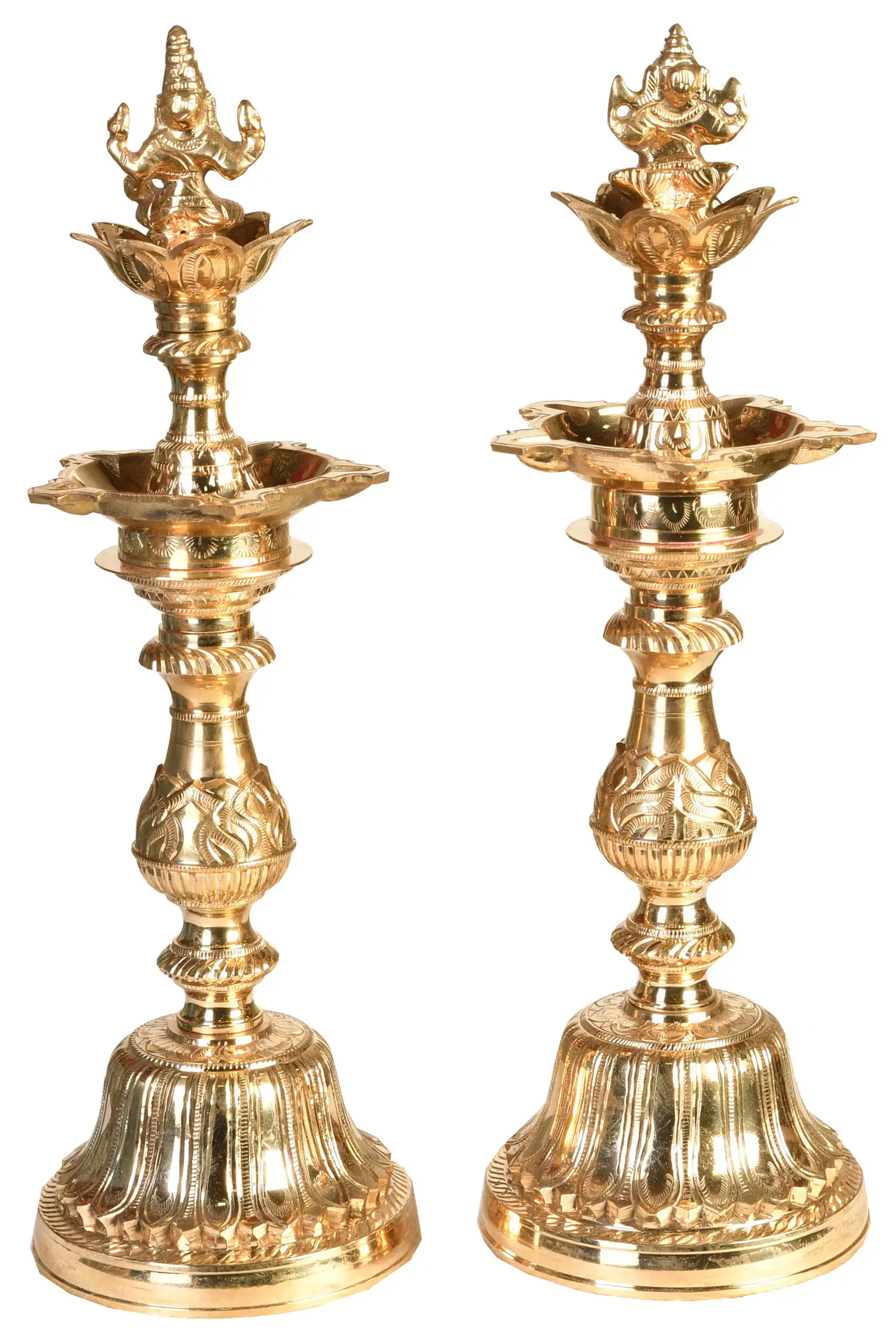 19" Lakshmi Ganesha Auspicious Lamps in Brass | Handmade | Made In India