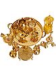 Plate - 1.4 Height x 13.5 Width x 10.8 Depth 2 Five Wick Lamp - 5.0 Height x 2.2 Dia Incense Burner - 1.8 Height x 2.6 Dia Panchapatra with Spoon - 2.4 Height x 2.4 Dia x 4.0 Length of Spoon Bowl - 2.4 Height x 3.5 Dia Diya with Stand - 2.4 Height x 6.0 width x 1.7 Depth Bell - 4.8 Height x 2.2 Dia Champhor Stand - 0.2 Height x 2.1 Width x 6.1 Depth Kalash - 2.7 Height x 2.7 Dia Oval Shaped Ritual Bowl - 1.7 Height x 2.0 Width x 3.2 Depth KumKum Box - 2.4 Height x 2.2 Width Lakshmi Diya - 5.4 Height x 3.2 Width x 3.8 Depth Ganesha - 2.2 Height x 1.2 Width x 1.0 Depth Chowki - 3.0 Height x 4.2 Dia Large Handheld Aarti - 3.3 Height x 3.3 Width x 6.1 Depth