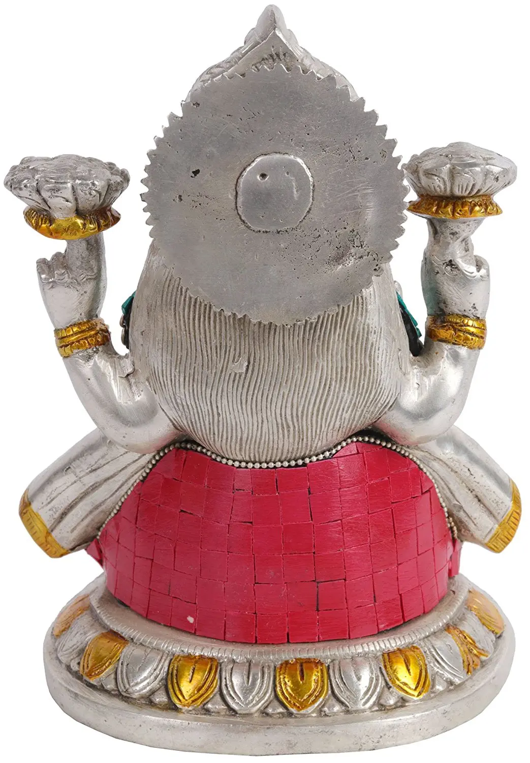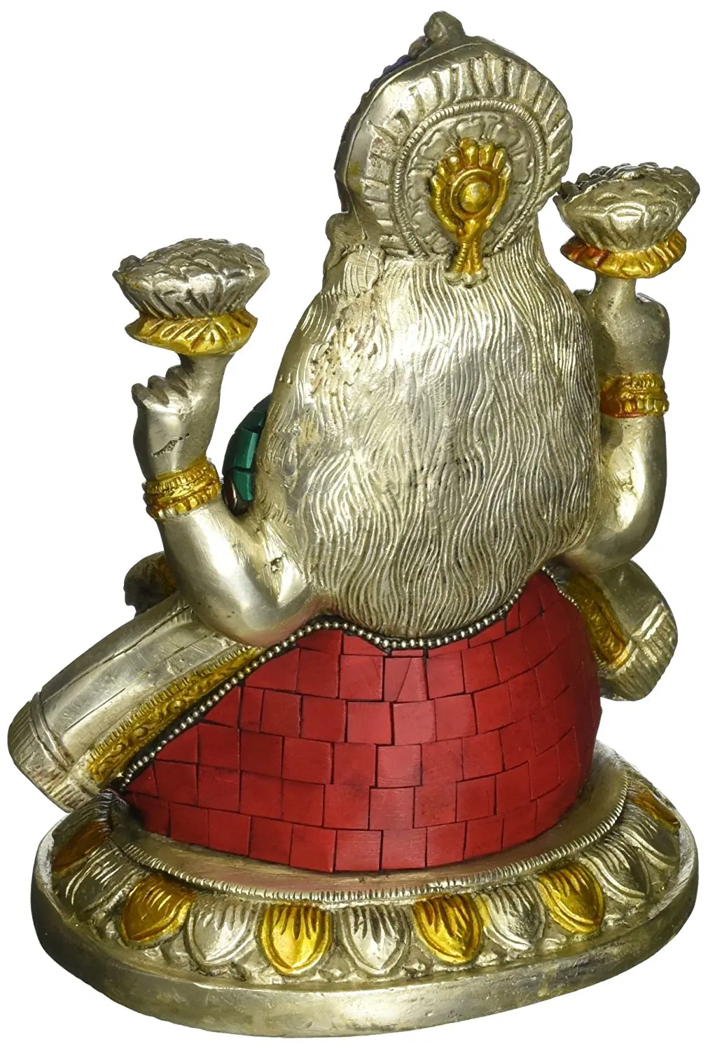 Crafted from high-quality brass, this statue is a testament to meticulous artistry and devotion. The intricate details, from the delicate ornamentation of her crown and jewelry to the textured patterns on her attire, showcase the skill of the artisan. The vibrant inlay work, featuring splashes of turquoise and coral-like hues, brings a lively dynamism to the piece, symbolizing the diverse facets of life and prosperity she governs. The silver finish lends an ethereal glow, enhancing the divine aura of the Goddess. This statue is not merely an object of art; it is a conduit for invoking blessings and a constant reminder of the pursuit of wealth, wisdom, and spiritual growth. Its substantial presence makes it a commanding centerpiece for any altar, meditation space, or living area, imbuing the surroundings with a sense of sacredness and positive energy.