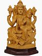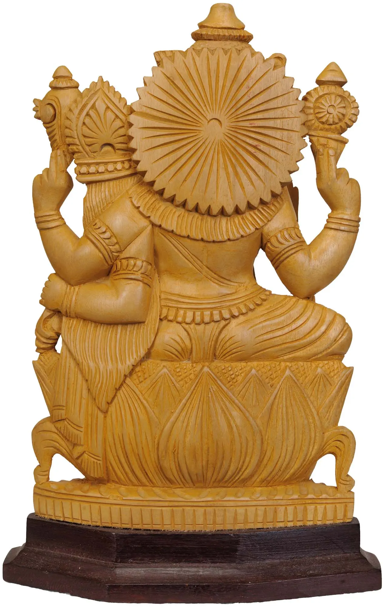 This exquisite wood carving captures the divine essence of Lord Vishnu and Goddess Lakshmi, seated together in a posture of supreme grace and auspiciousness. Crafted from the finest White Cedar wood sourced from the lush region of Trivandrum in Kerala, this sculpture embodies the rich tradition of Indian craftsmanship. The warm, natural hue of the wood lends an ethereal glow to the divine figures, highlighting every meticulously carved detail. Lord Vishnu, the preserver of the universe, is depicted with his serene countenance and divine attributes. His presence signifies cosmic order, stability, and the unwavering protection he offers to all creation. He holds a symbolic mace (gada), representing strength and authority, and his raised palm offers blessings and assurance of well-being. Vishnu's role as the sustainer is intricately woven into the fabric of Hindu mythology, where he appears in various avatars to restore balance and righteousness in the world. Seated beside him, Goddess Lakshmi, the embodiment of wealth, fortune, and prosperity, emanates radiant beauty and compassion. Her gentle smile and outstretched hand showering blessings are a powerful symbol of abundance and material well-being. Lakshmi is not merely about monetary wealth, but also encompasses good fortune, purity, and the blossoming of all noble aspirations. Legends tell of her emergence from the churning of the cosmic ocean, offering prosperity to the gods and humanity alike.