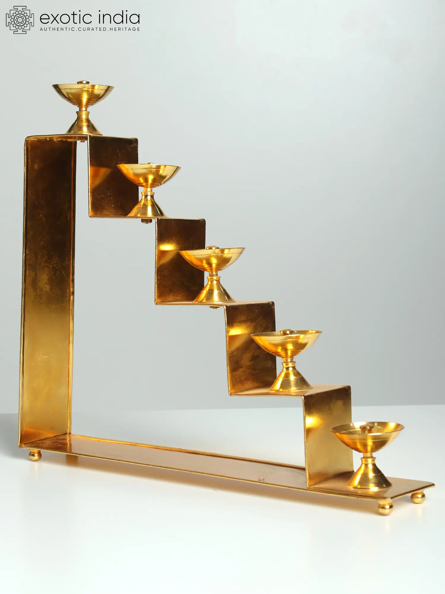 This Brass Lamps on Multi Steps Stair Stand is a wonderful ceremonial piece representing the Atma and Parmatma. The lamp represents a lovely notion that Atma and Parmatma cannot reach their objective without following enlightenment. The lamps utilized here are Atma Lamps, which are based on the concept of the soul. It has a core nozzle, which is the Atma, and an oil basin around it, which represents the material existence of humans. This lamp set is an excellent complement to any setting that emphasizes enlightenment and meditation.
