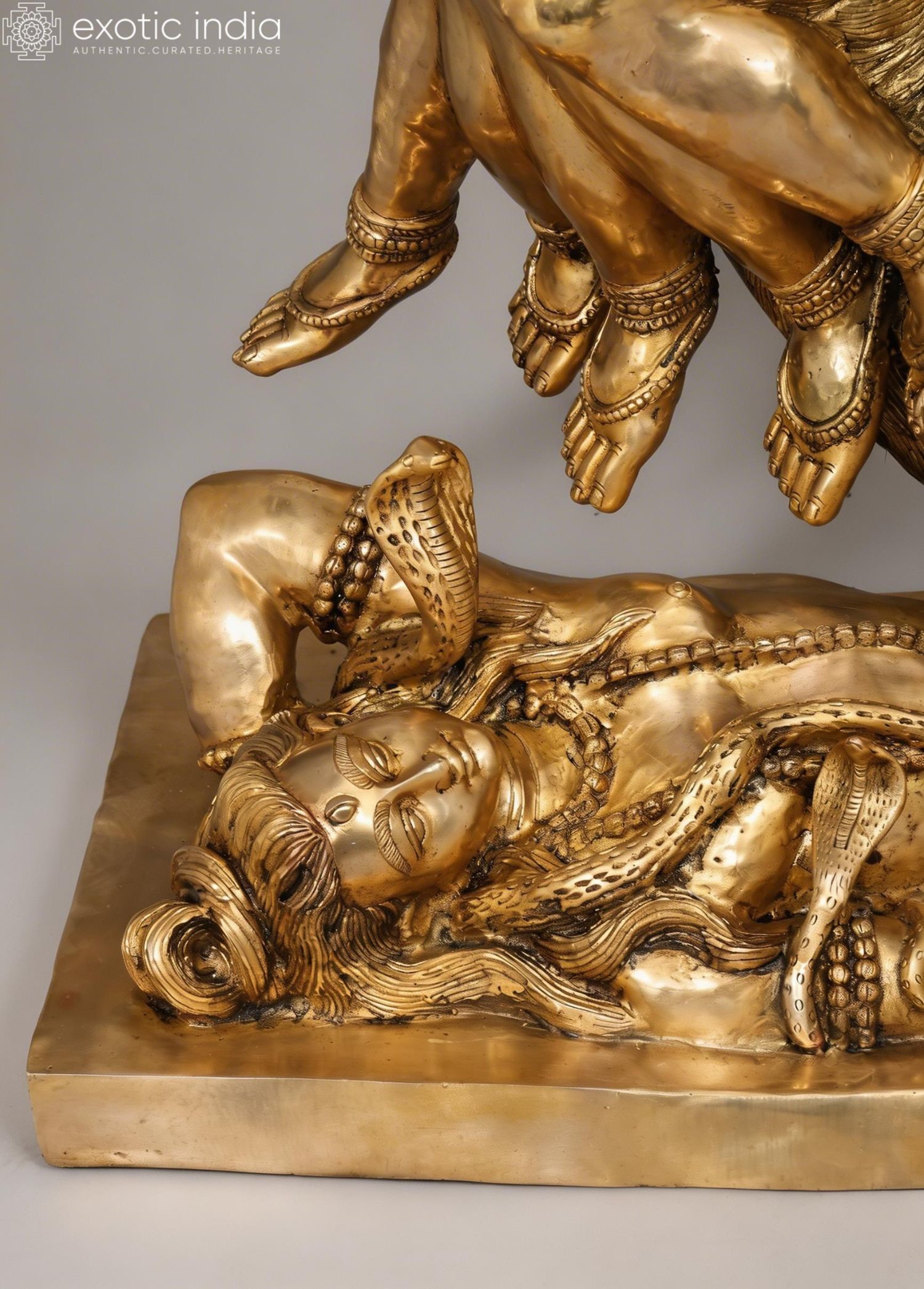 Mahakali is shown triumphantly standing on the serene figure of Lord Shiva.