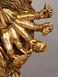The statue features intricate details, including numerous faces and hands, symbolizing her immense power.