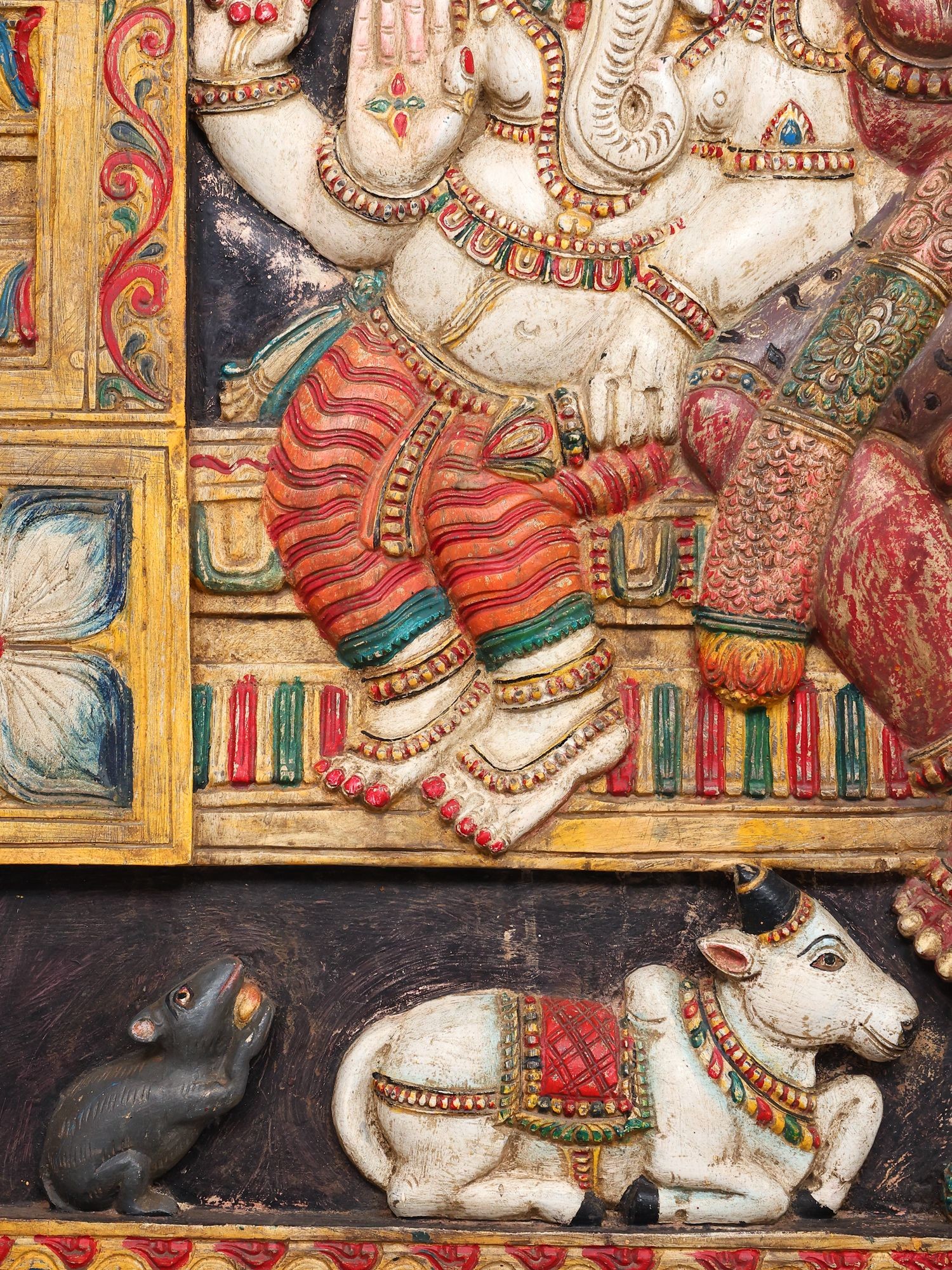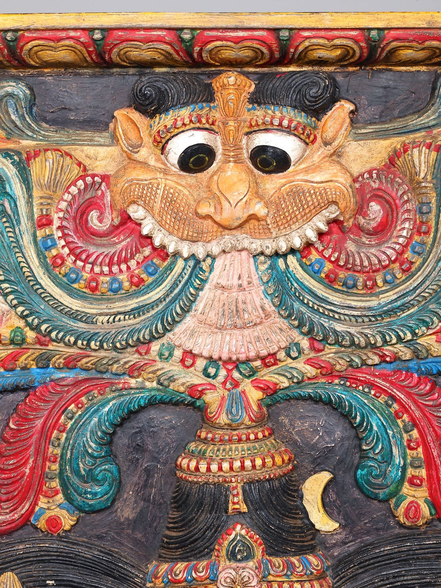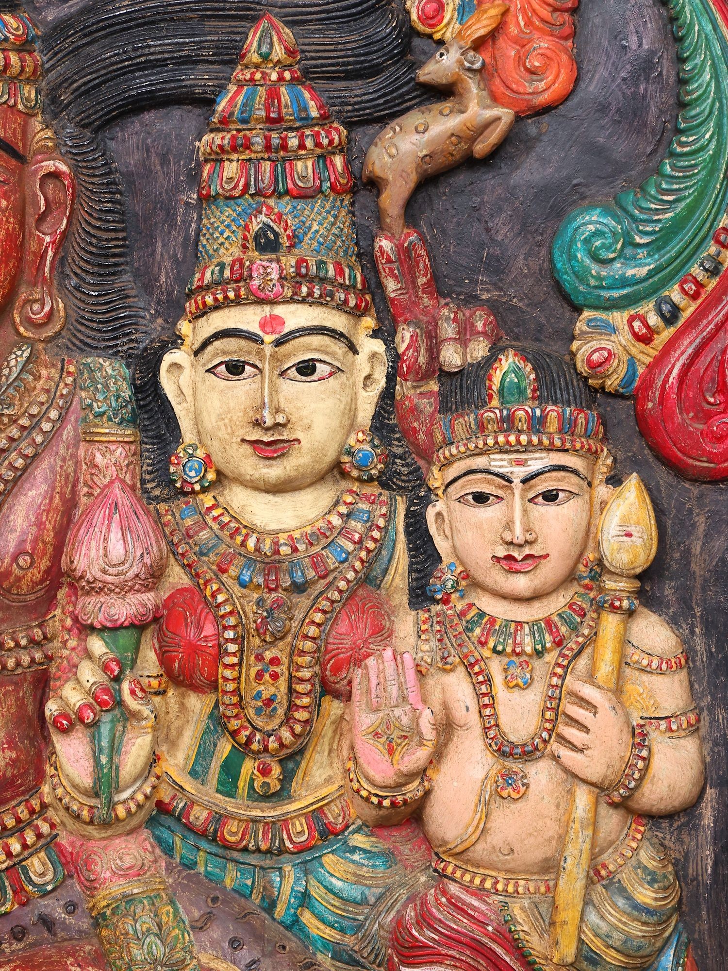 Large 52" Wood Carving Panel: Shiva Family with Kirtimukha Arch