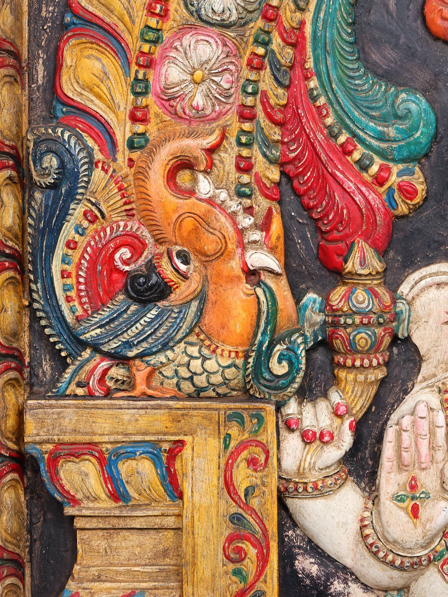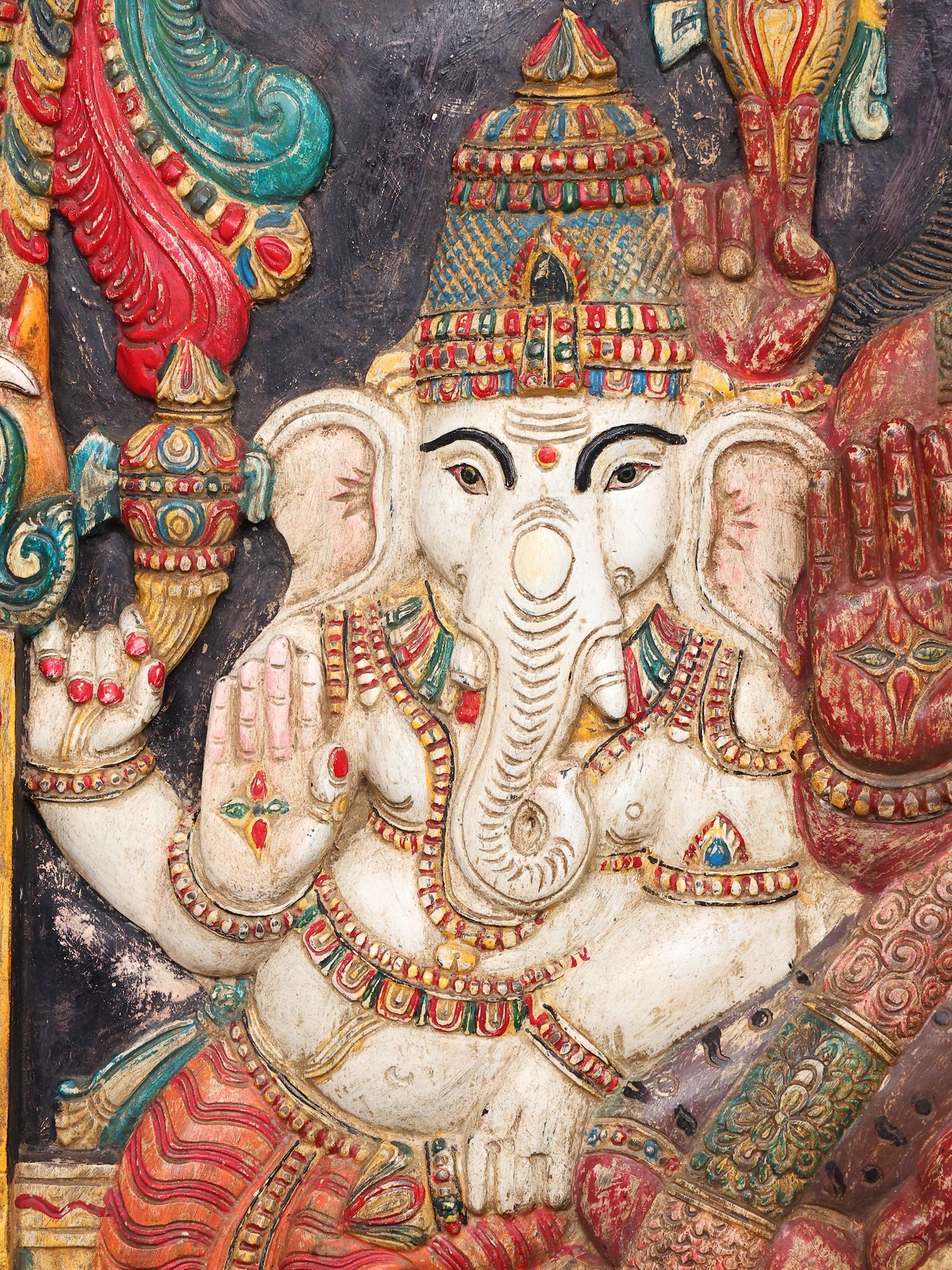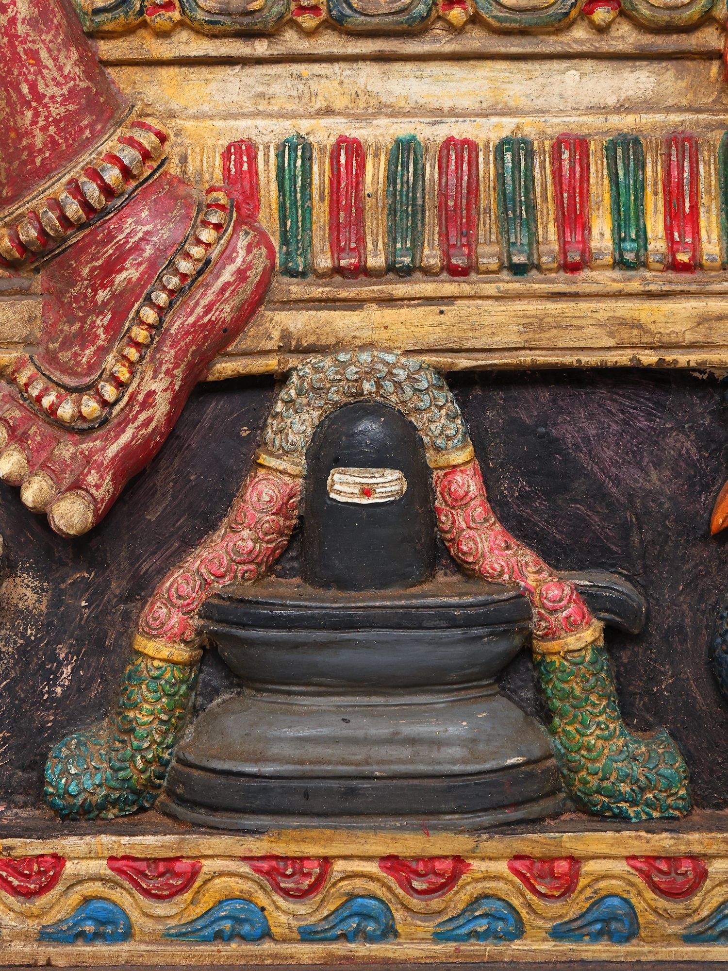 Large 52" Wood Carving Panel: Shiva Family with Kirtimukha Arch