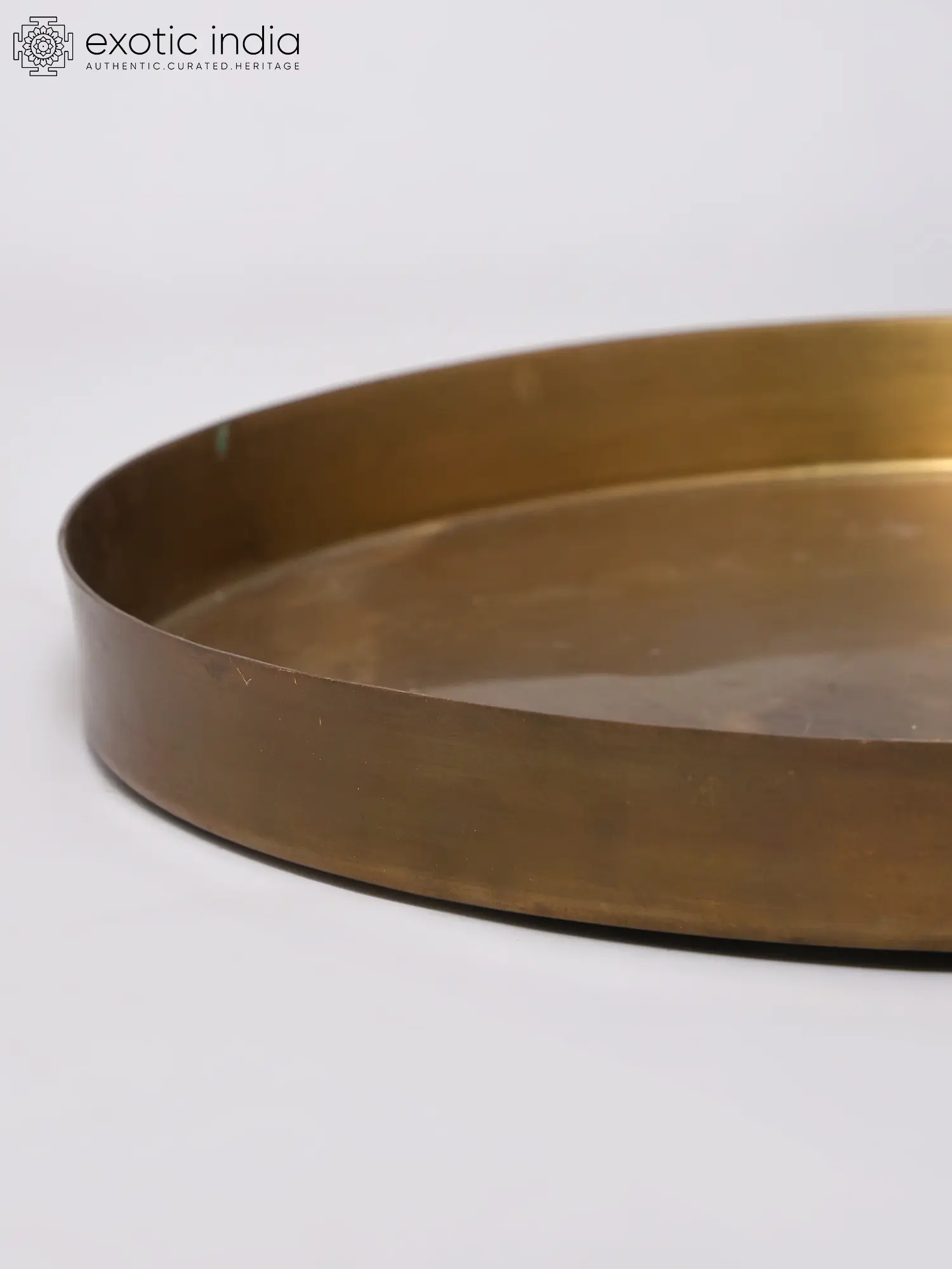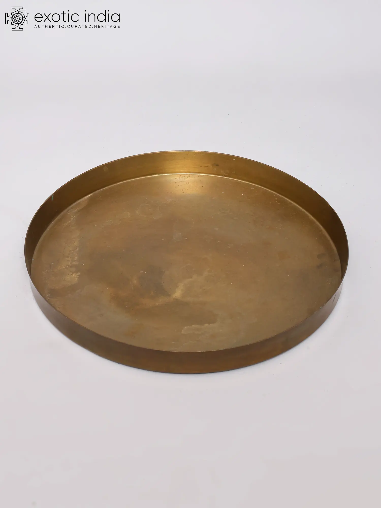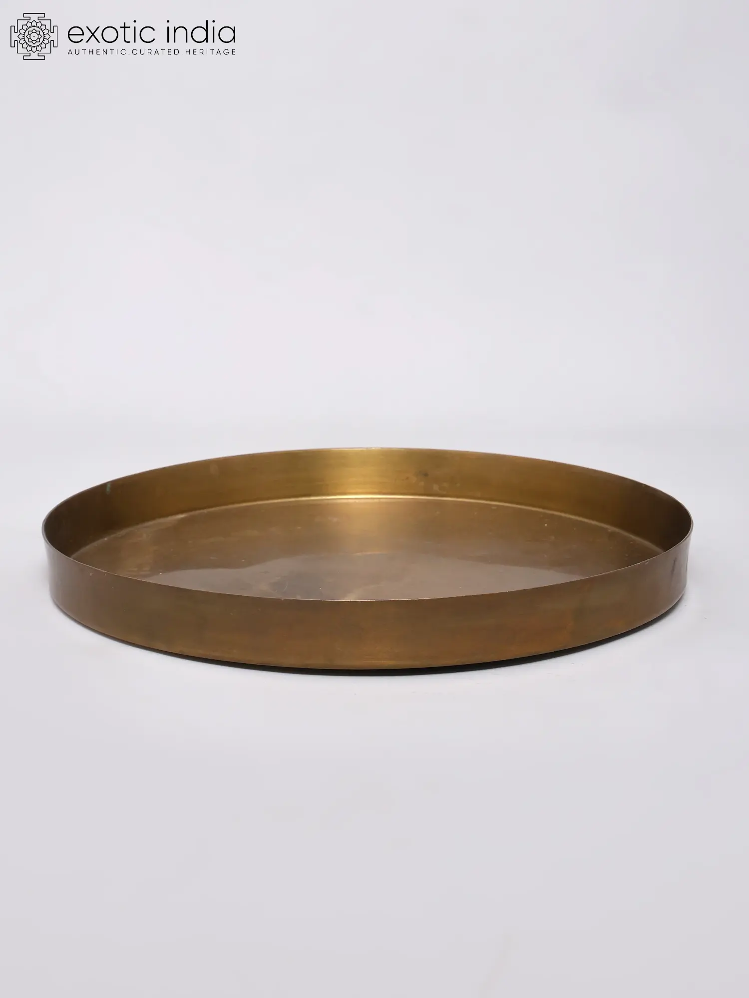 Measuring a generous twelve inches in diameter, its broad surface offers ample space for offerings, lamps, and sacred implements. The gently raised rim, approximately one inch in height, elegantly contains its contents while adding a graceful silhouette. The warm, lustrous sheen of the brass, a result of its carefully selected alloy, reflects light beautifully, creating an inviting and sacred atmosphere.
