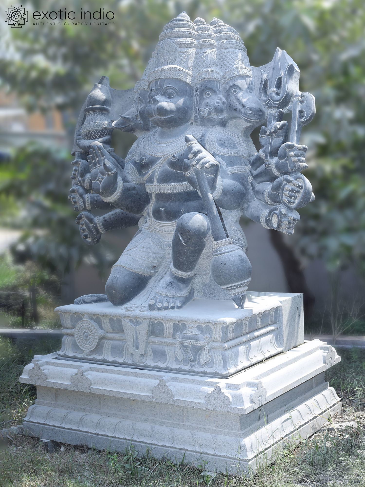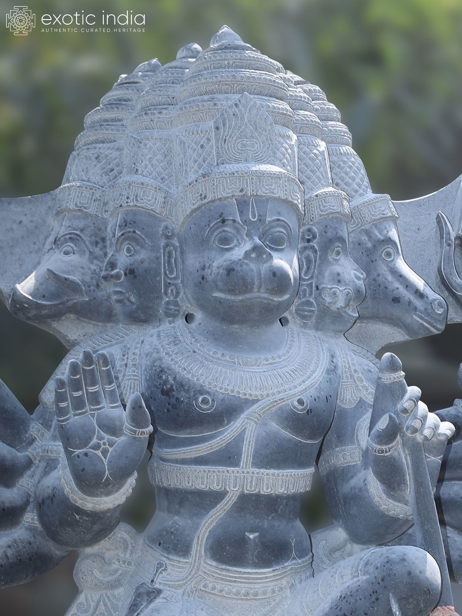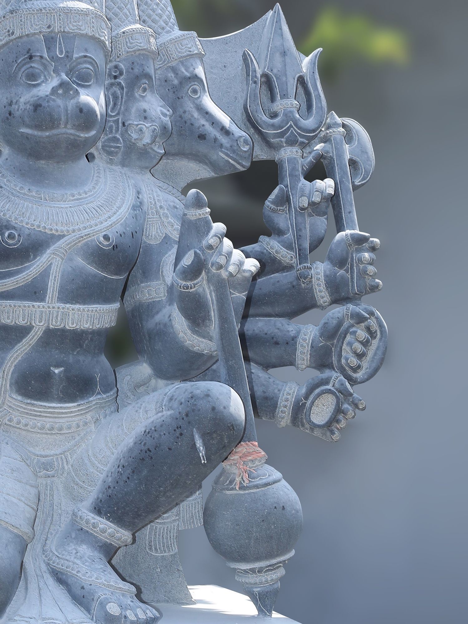 Majestic 84-inch tall stone statue representing the five-faced Panchmukhi Lord Hanuman.