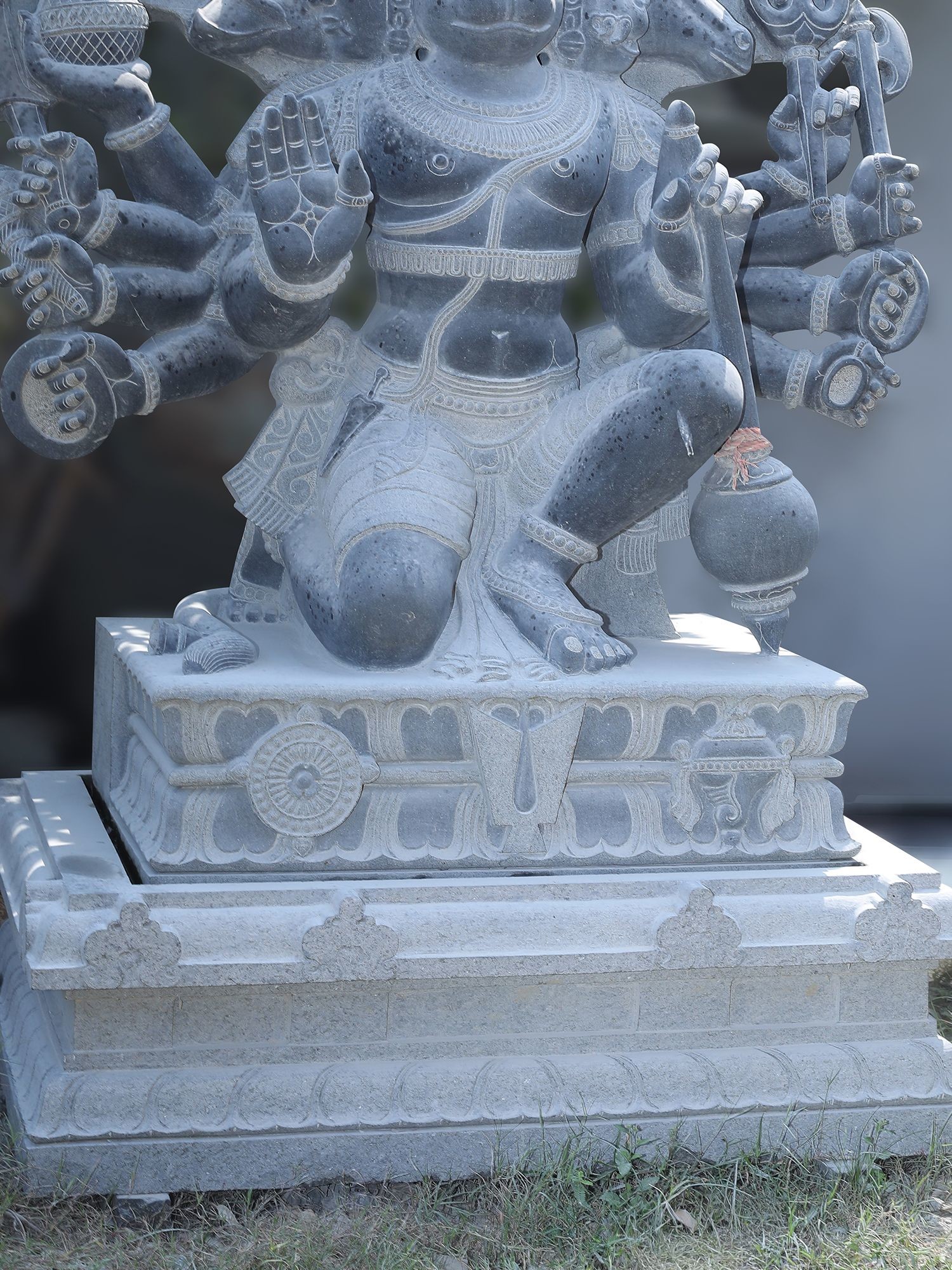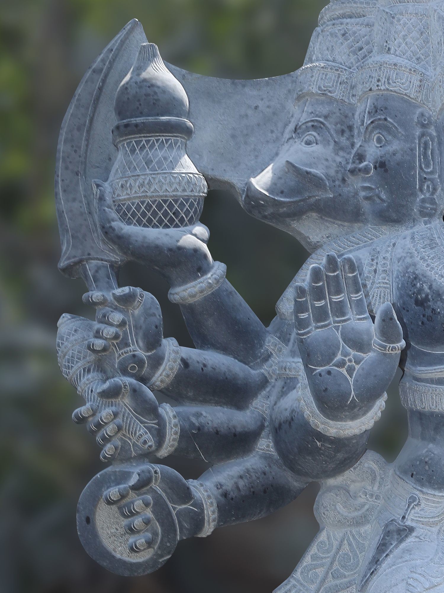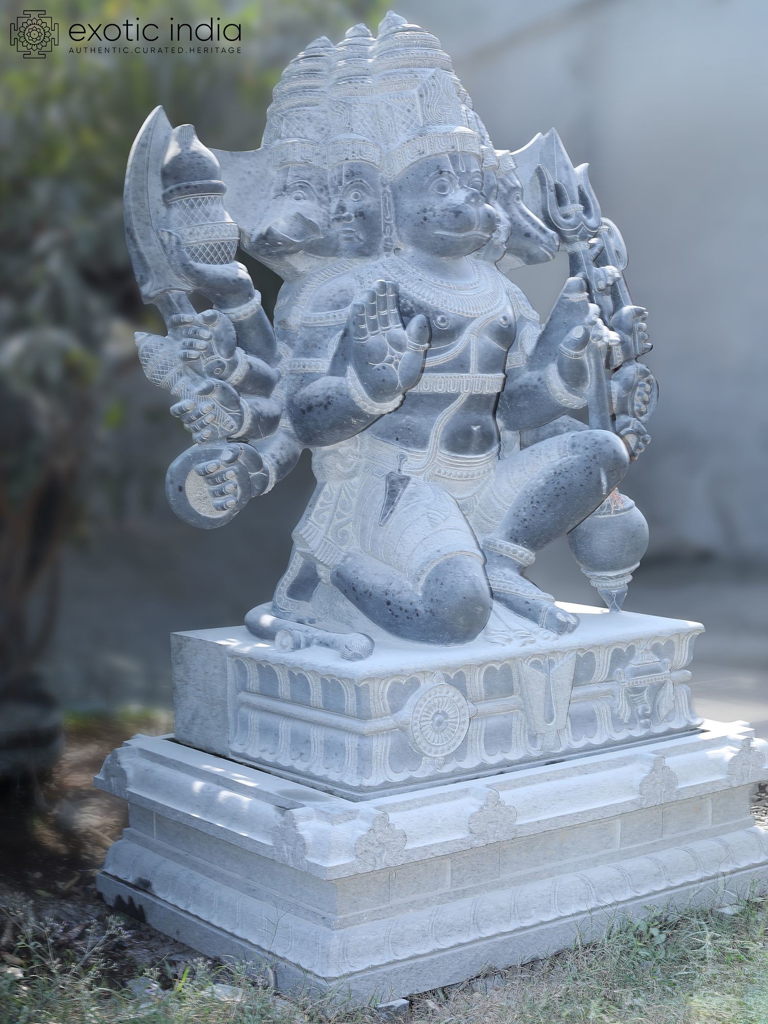 Majestic 84-inch tall stone statue representing the five-faced Panchmukhi Lord Hanuman.