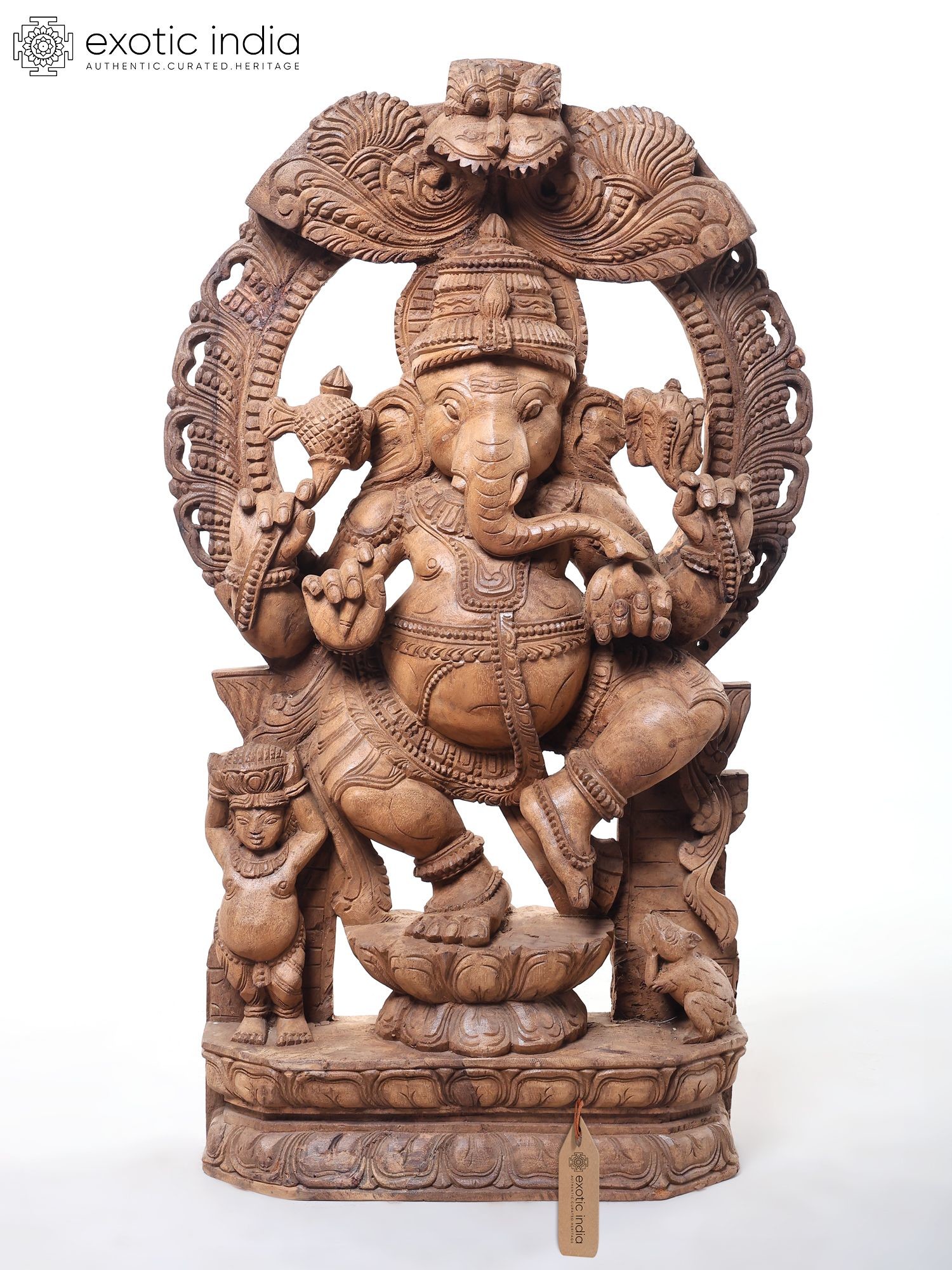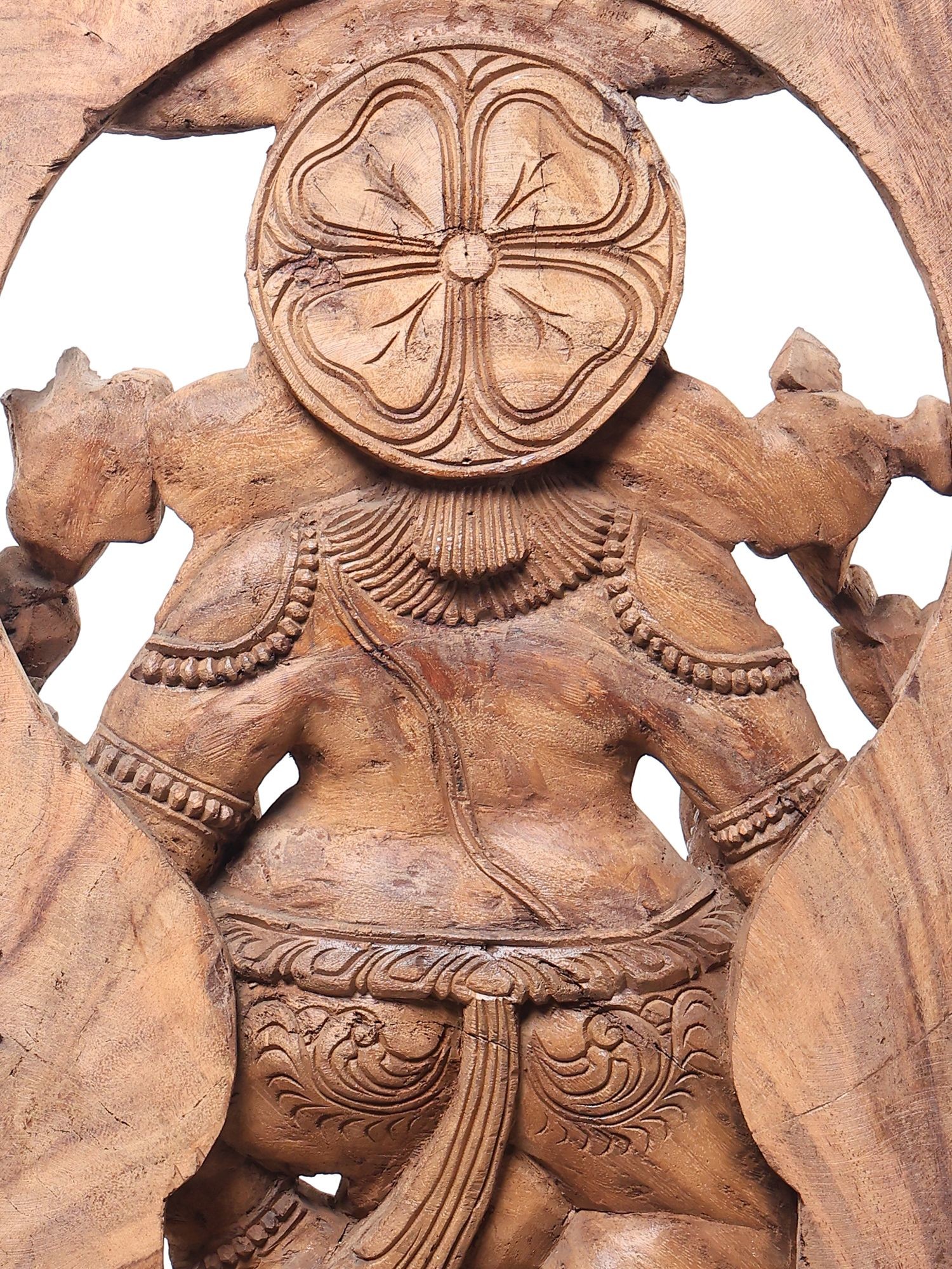 Large Hand-Carved Dancing Ganesha Wood Sculpture