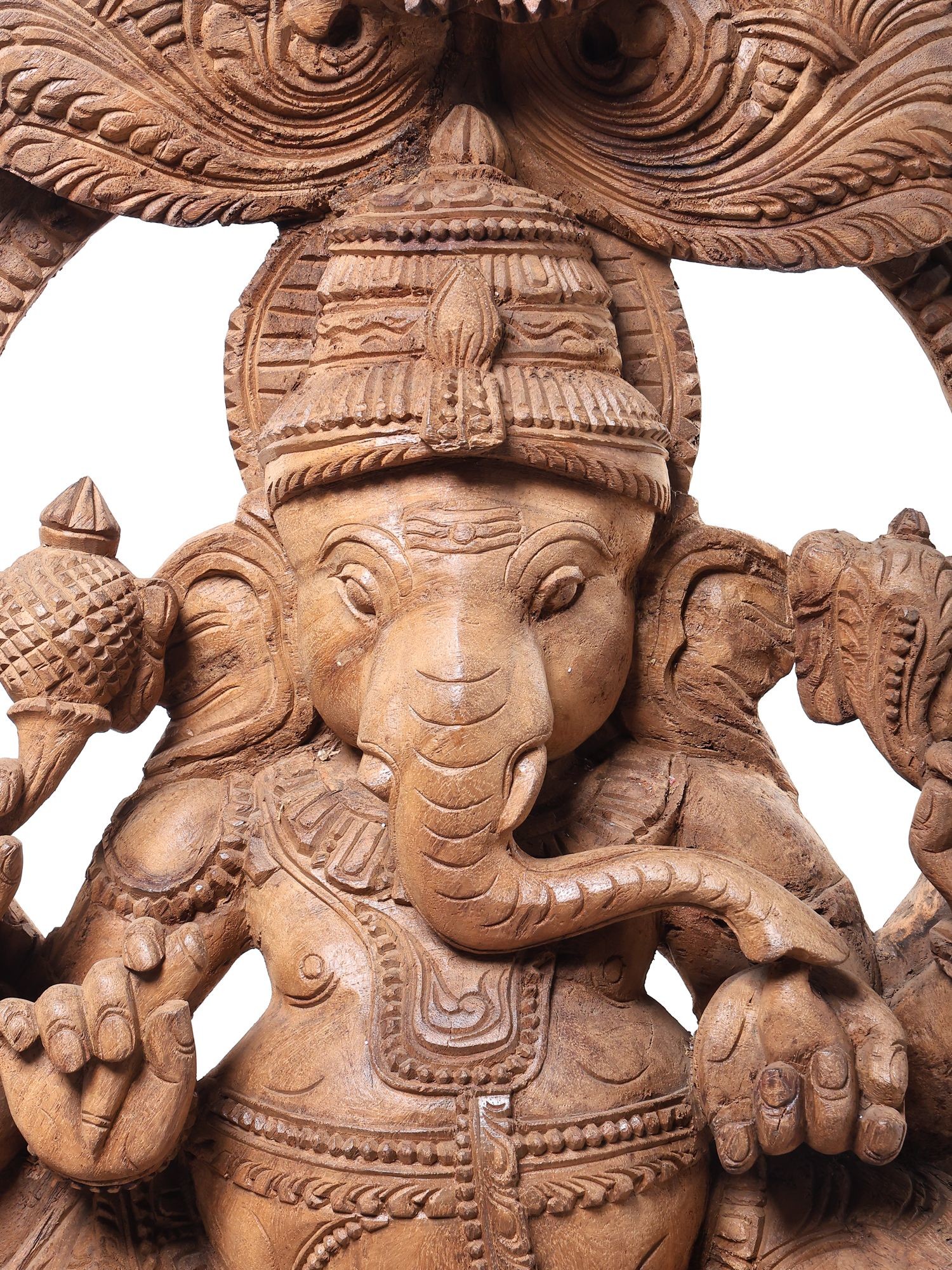 96" Huge Panchmukhi Lord Ganesha Wooden Statue | South Indian Temple Wood Carving