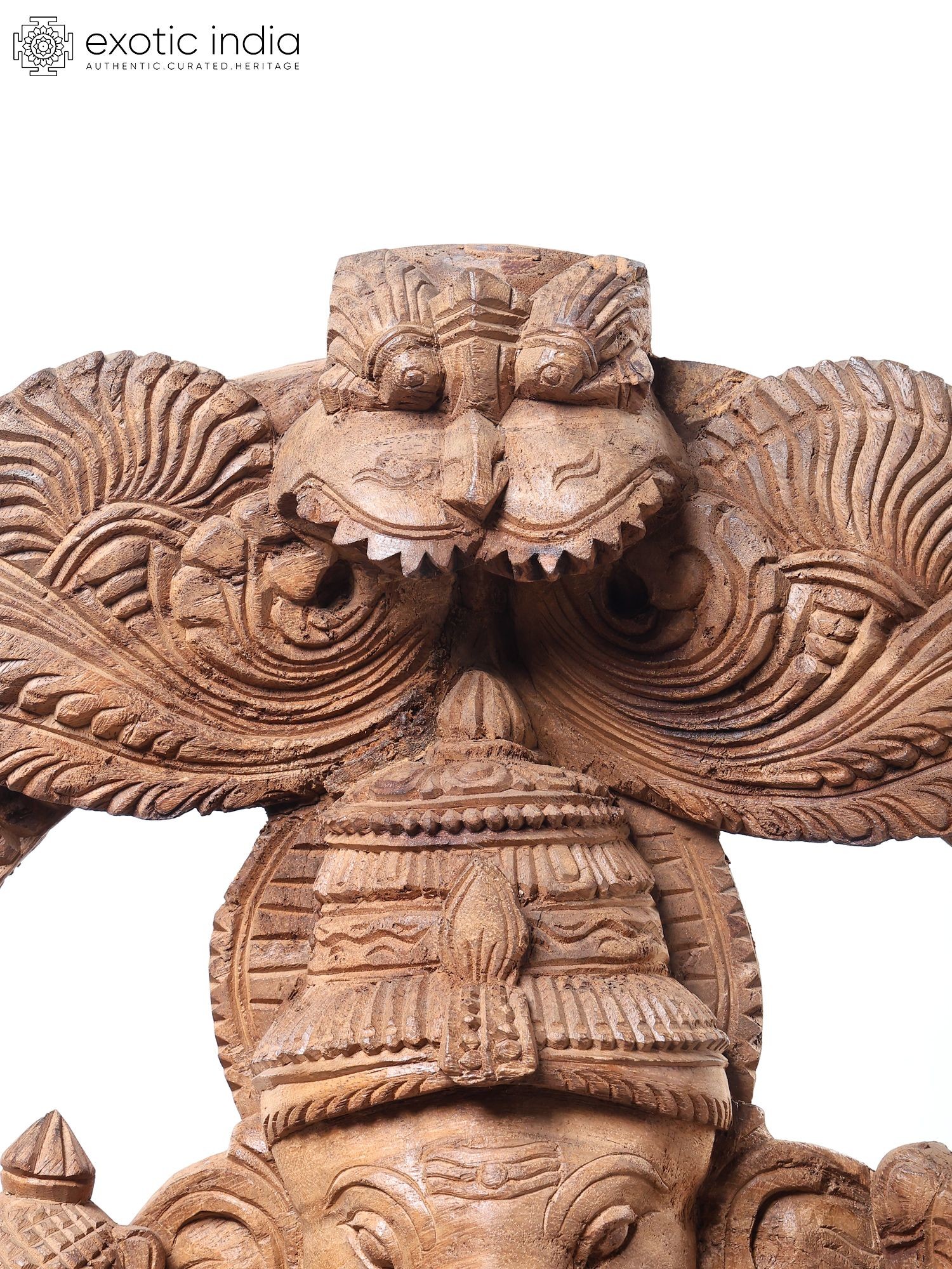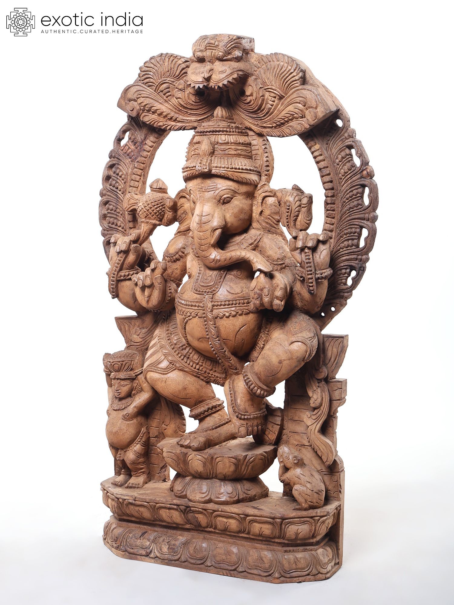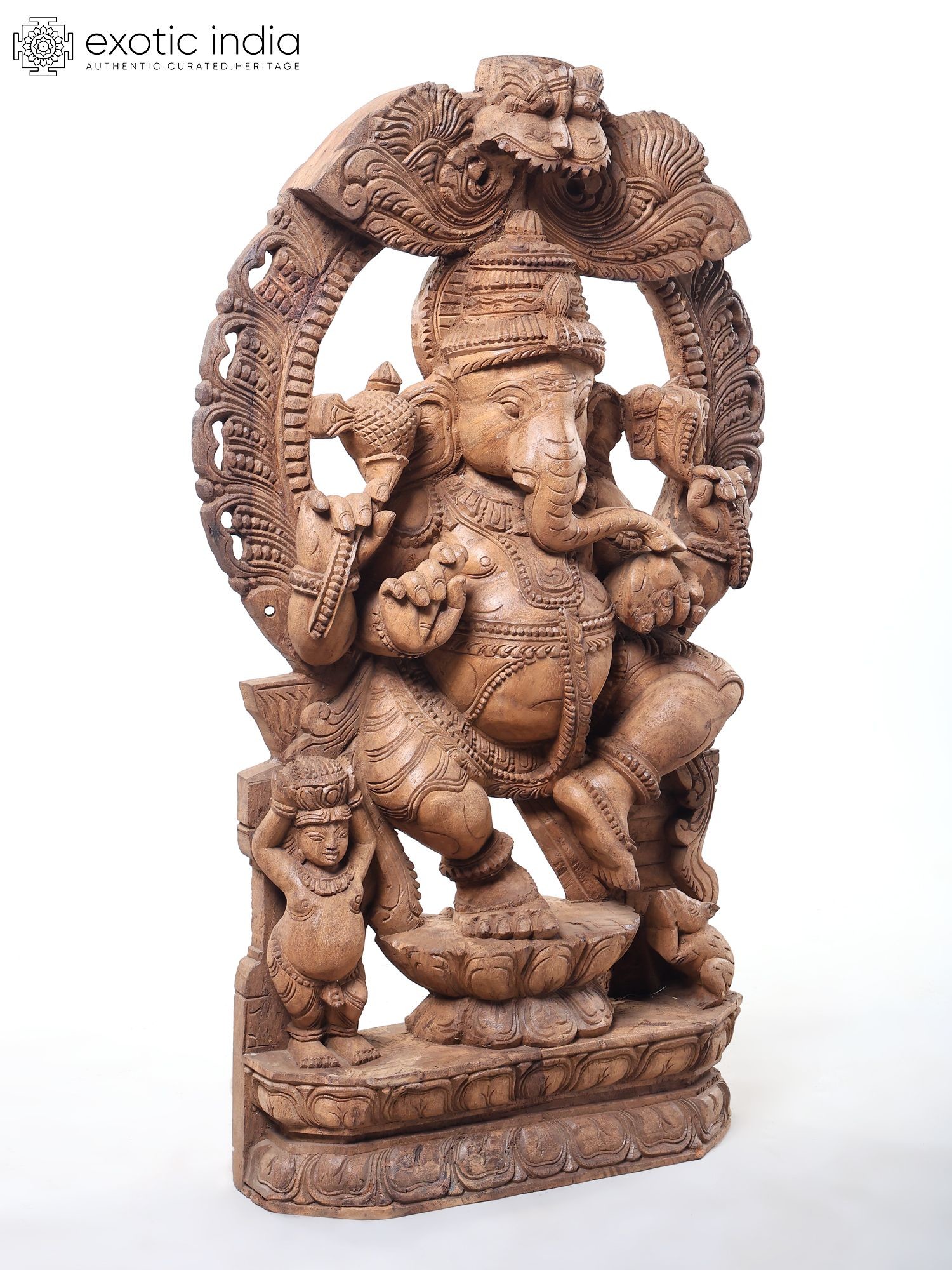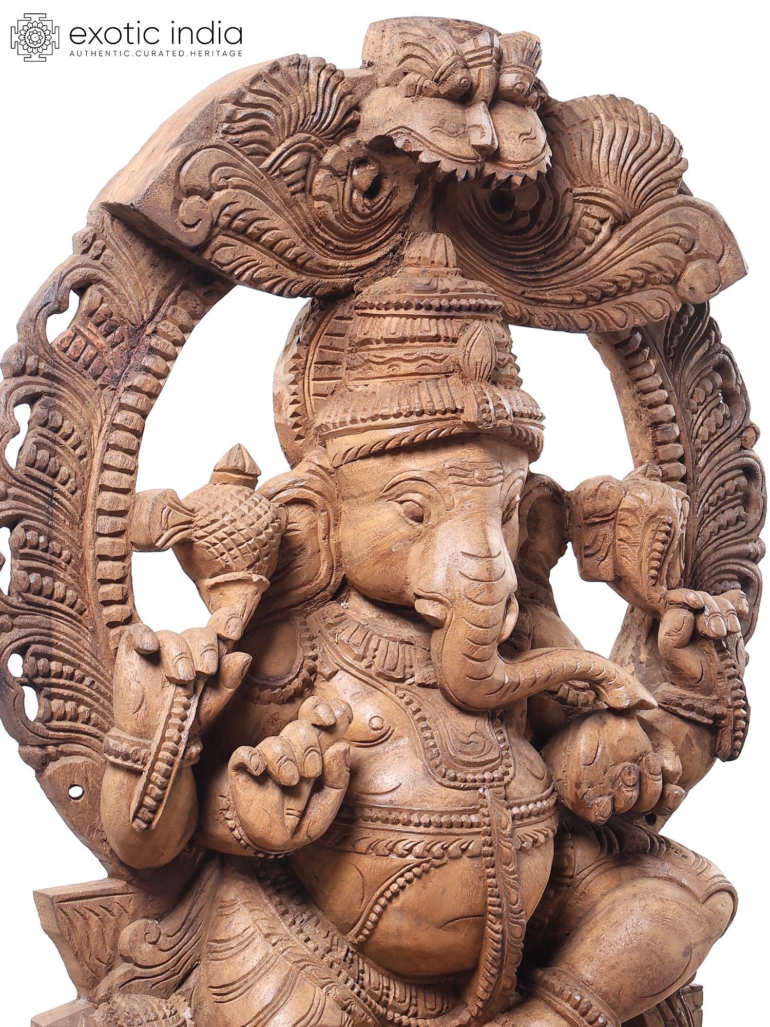 72" Large Ashtabhujadhari Lord Ganapati Seated on Kirtimukha Throne | Wood Carved Statue