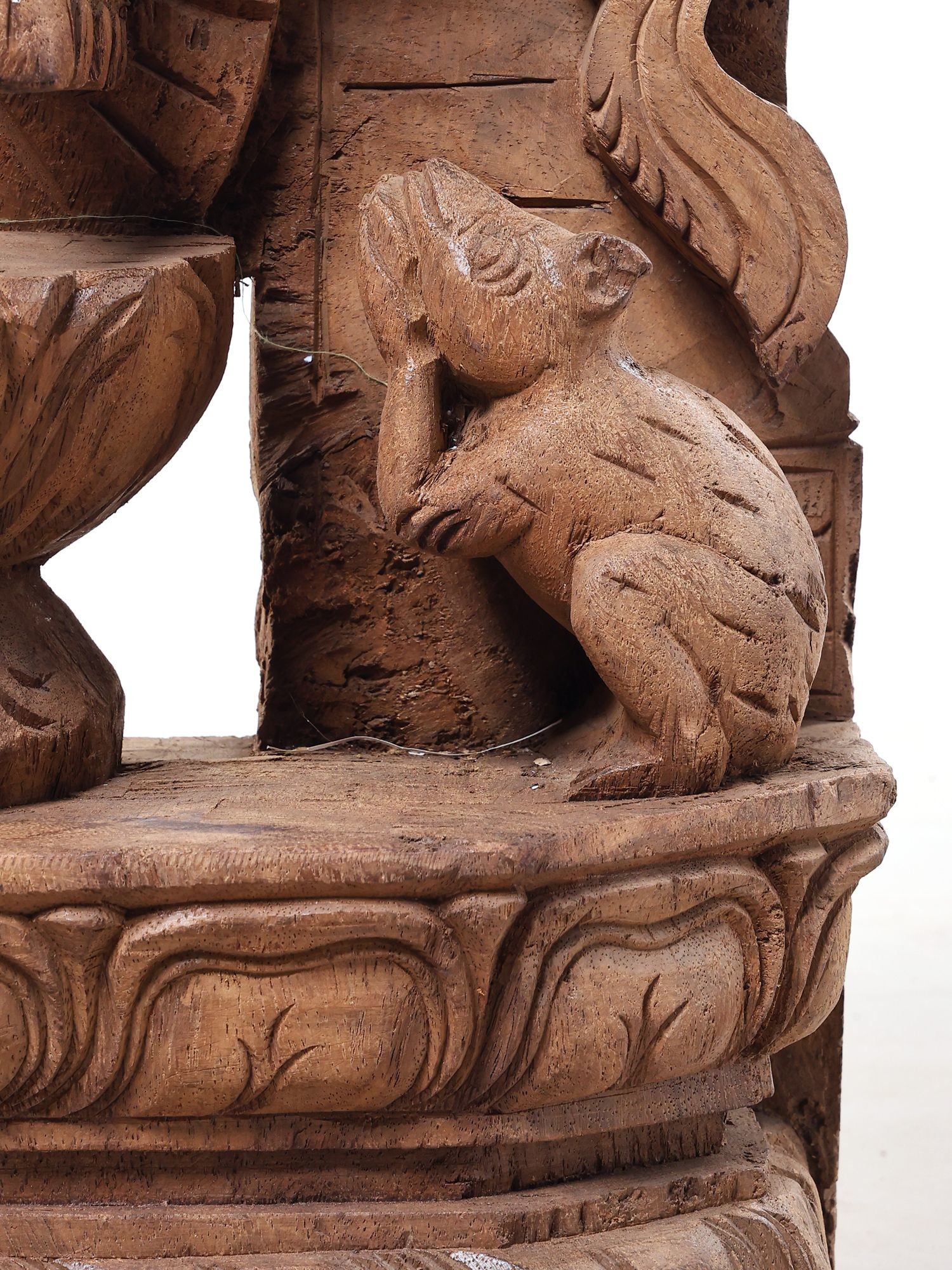 Features accompanying figures and motifs that enhance the narrative and visual appeal of the sculpture.