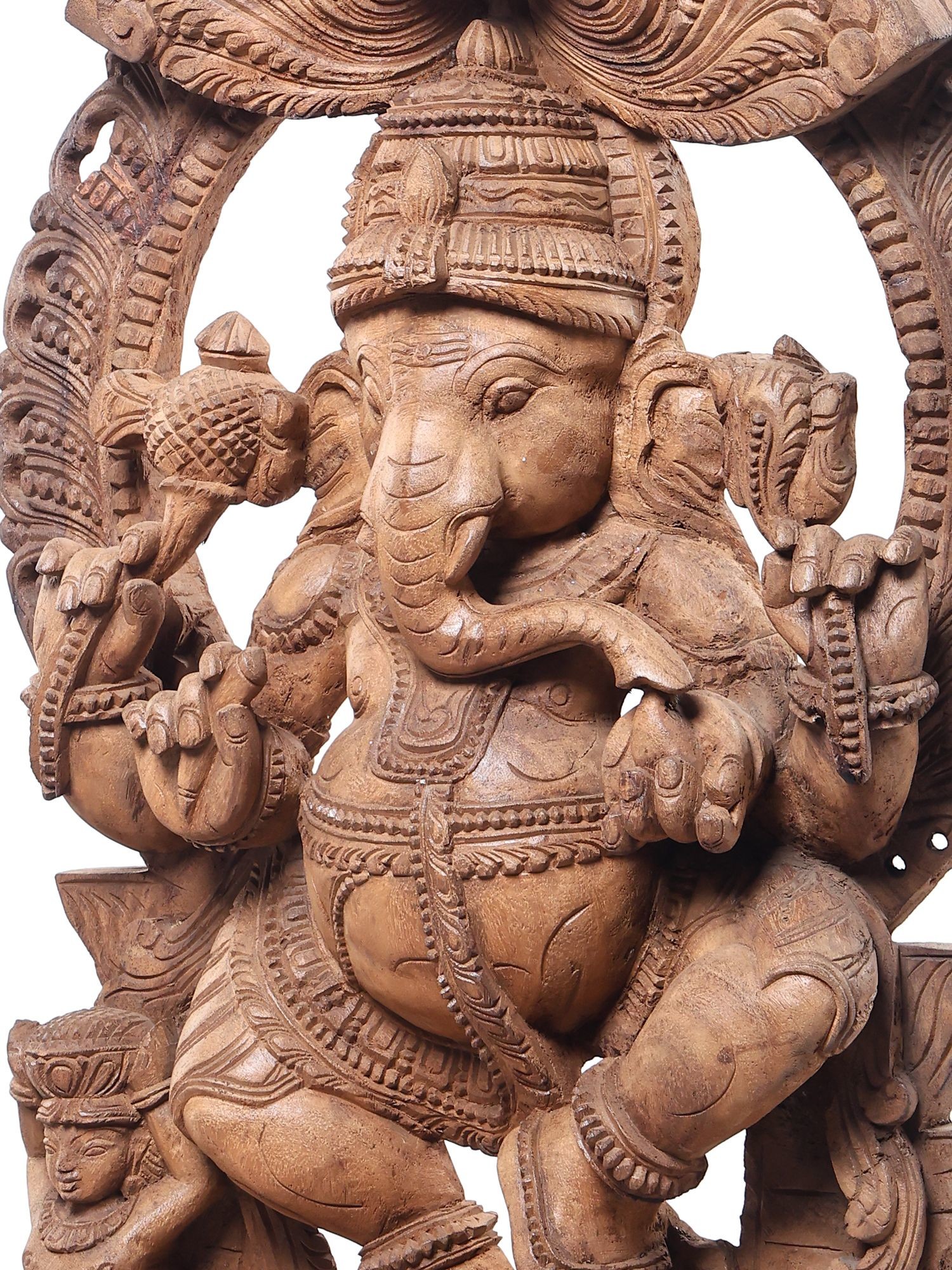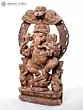 Large Size Lord Ganesha Wooden Statue Seated atop His Vahana