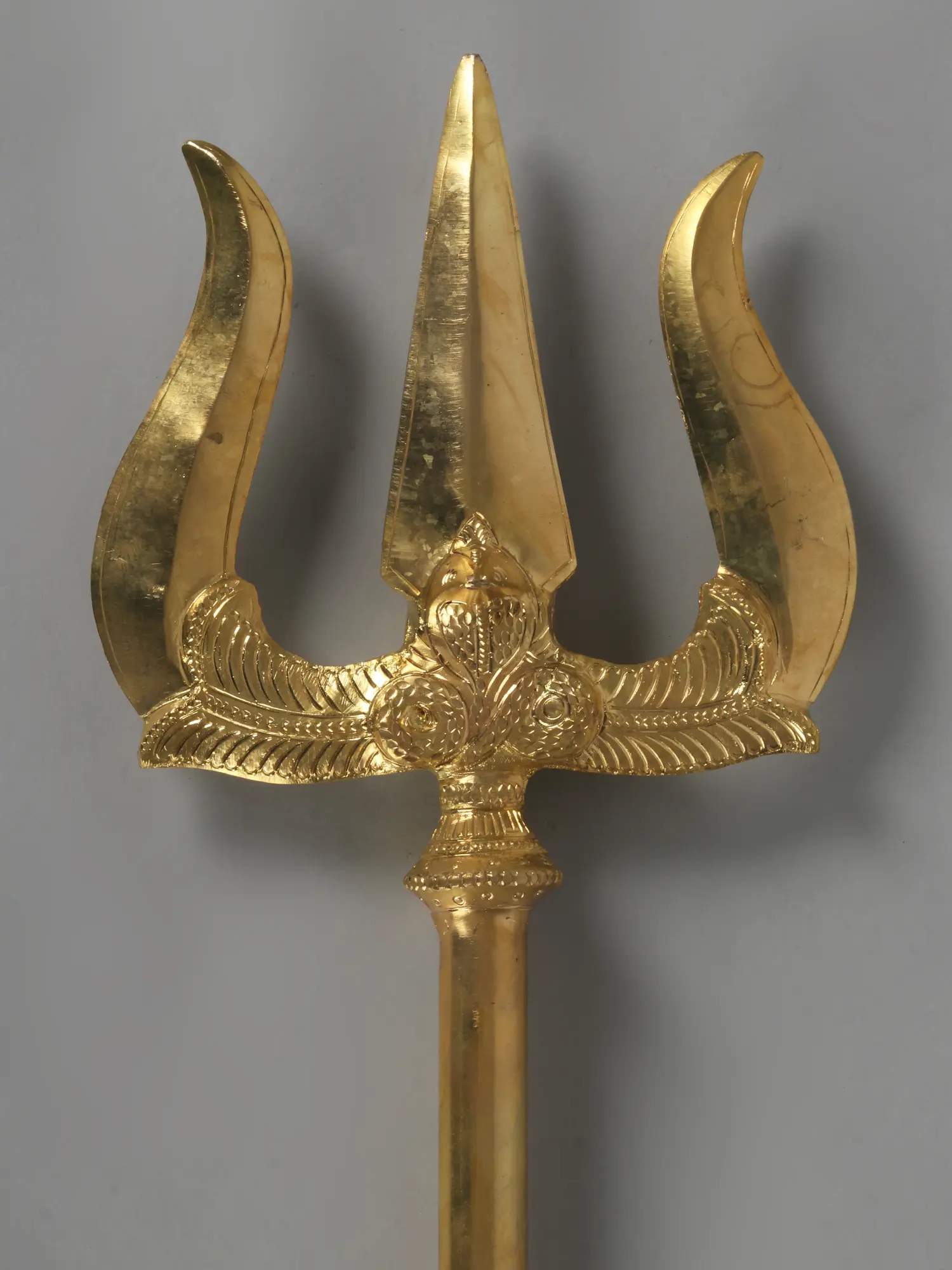 Unveil the trinity of existence with our Large Shiva's Trident, the sacred Trishul, precisely handcrafted in brass. This divine weapon is more than just a brass artifact; it's a symbol of creation, preservation, and destruction. Born from the hands of skilled artisans, it carries the essence of the cosmic dance. As you hold this Trishul, may you find balance and harmony in the cycles of life? It becomes a representation of the eternal dance of Lord Shiva, guiding you to embrace the impermanence of existence with grace.