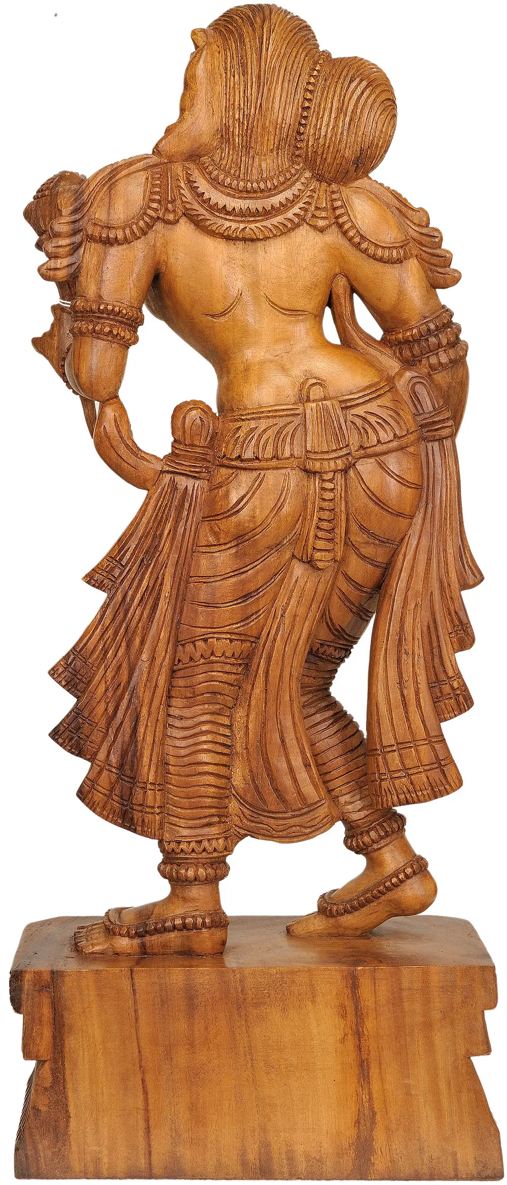 This large-sized Apsara statue is more than just a decorative object; it is a conduit to a world of myth, spirituality, and artistic heritage. Its substantial presence makes it a striking focal point for any home, temple, or meditation space. The warm, natural tones of the wood lend an organic beauty that complements any interior decor. Whether you are a collector of religious art, an admirer of intricate craftsmanship, or simply seeking to imbue your surroundings with an aura of divine grace and timeless elegance, this Apsara carving offers a profound connection to the ancient traditions and artistic soul of South India. It is a piece that invites contemplation, admiration, and a sense of wonder, bringing the celestial realm a little closer to your everyday life.