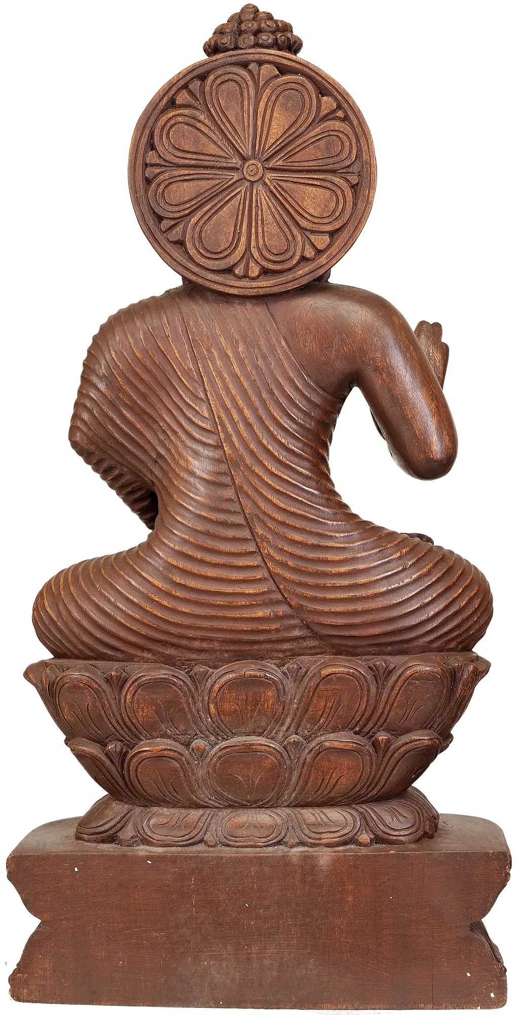 The imposing yet gentle presence of this Buddha statue makes it a captivating centerpiece for any home, meditation room, or sacred space. The warm tones of the wood emanate a comforting aura, inviting tranquility and mindfulness into your surroundings. Whether you are a devout practitioner or simply appreciate the profound philosophy of Buddhism and the artistry it inspires, this statue serves as a constant reminder of the path to peace, compassion, and enlightenment. Its substantial size and intricate detail ensure it will be a cherished addition, drawing the eye and inspiring contemplation for all who behold it.