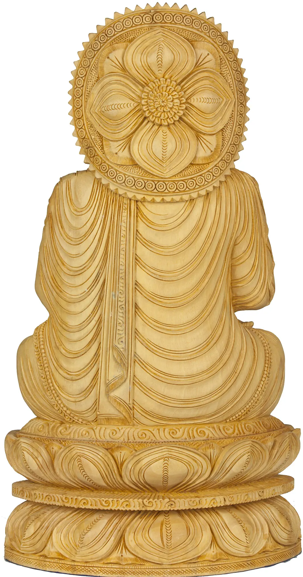 This sacred artwork is created from Kadamba wood, carefully chosen for its fine grain and spiritual significance. In ancient Indian lore, the Kadamba tree is revered and is often associated with deities and sacred groves. It is said that Lord Krishna played his flute beneath the Kadamba trees, enchanting all who heard its melodies. The warm, natural hue of the wood enhances the statue's peaceful aura, creating a sense of harmony and tranquility. Each delicate curve and line of the statue highlights the natural beauty of the wood, transforming it into a timeless embodiment of spiritual awakening.