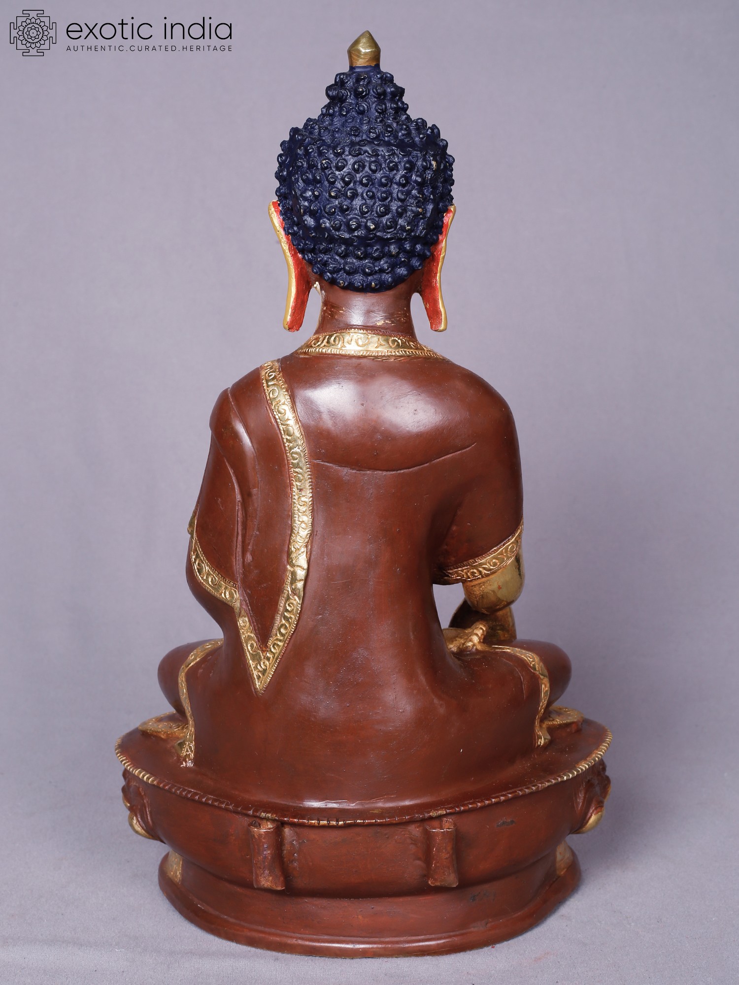 14" Shakyamuni Buddha Idol From Nepal | Copper Statue with Gold Finish
