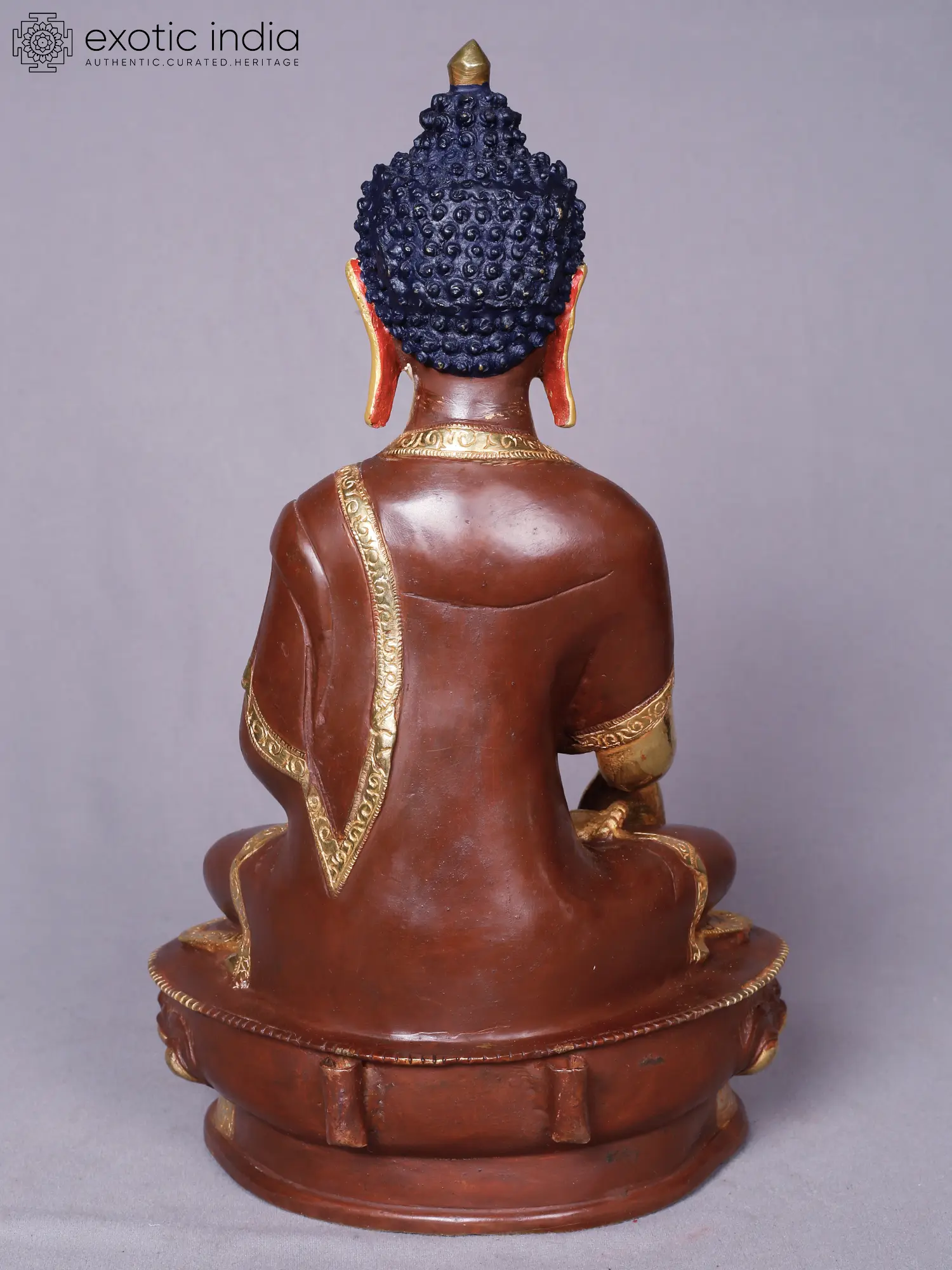 8" Shakyamuni Buddha Idol from Nepal | Copper Statue with Gold Plated