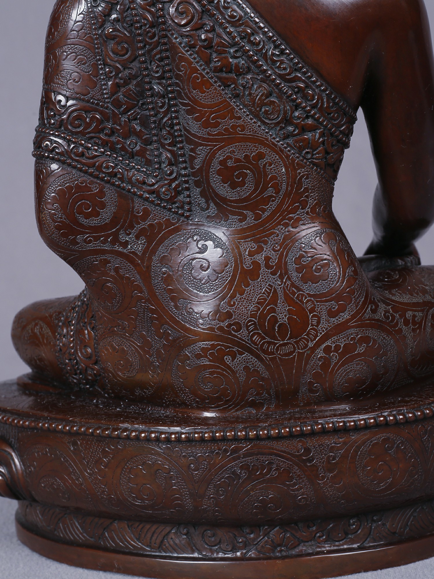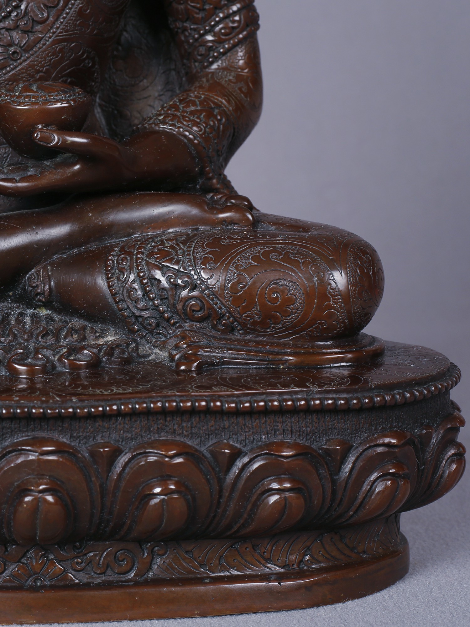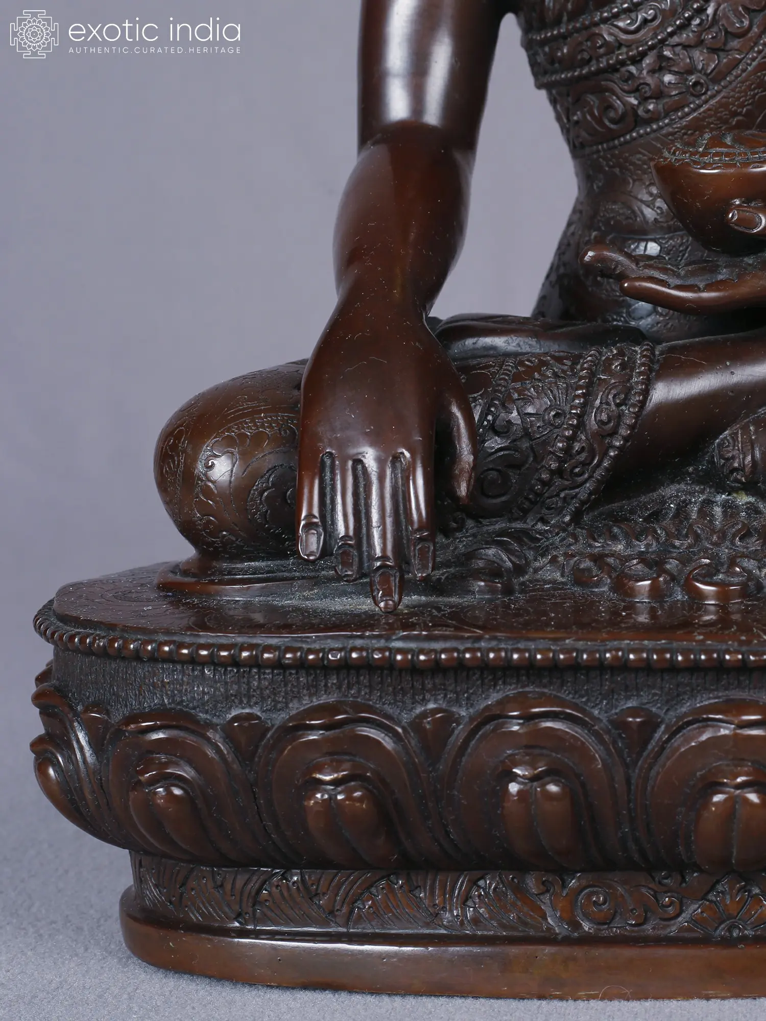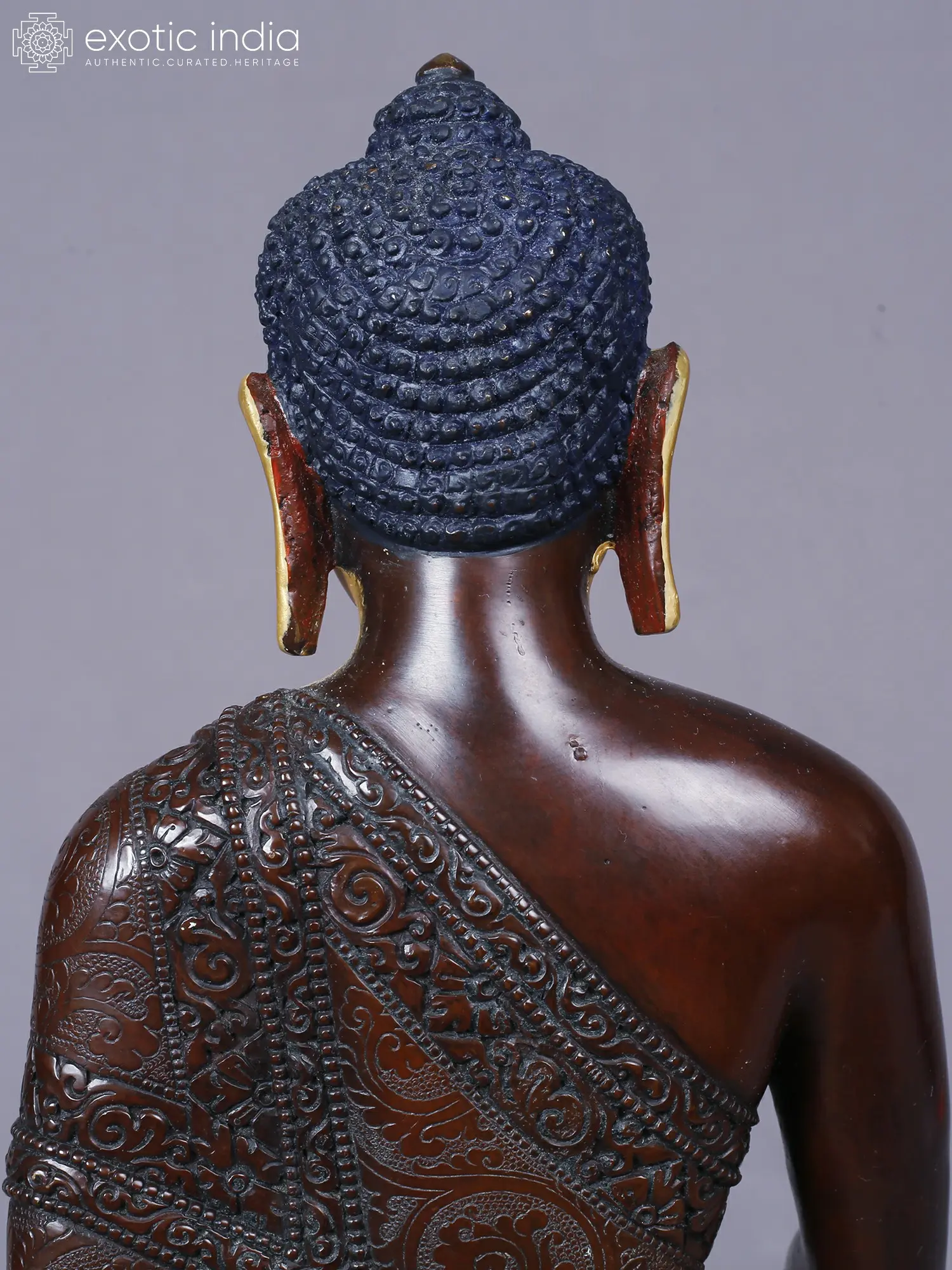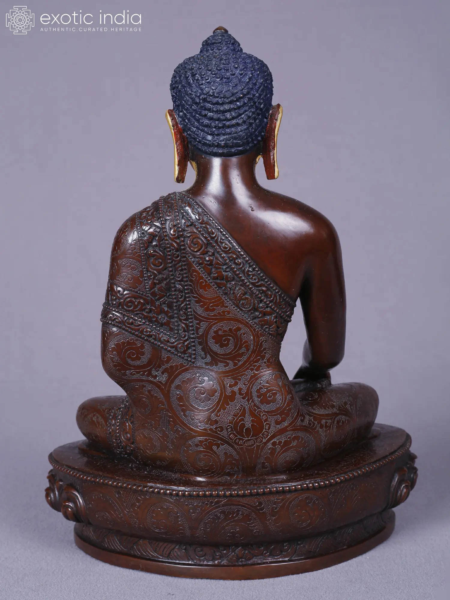 Crafted from the finest copper, this sculpture embodies a dedication to traditional artistry. Each detail, from the serene facial features to the intricate robes, has been shaped by skilled hands, showcasing a mastery passed down through generations. The lustrous gold plating adds a regal dimension, highlighting the divine nature of the subject.