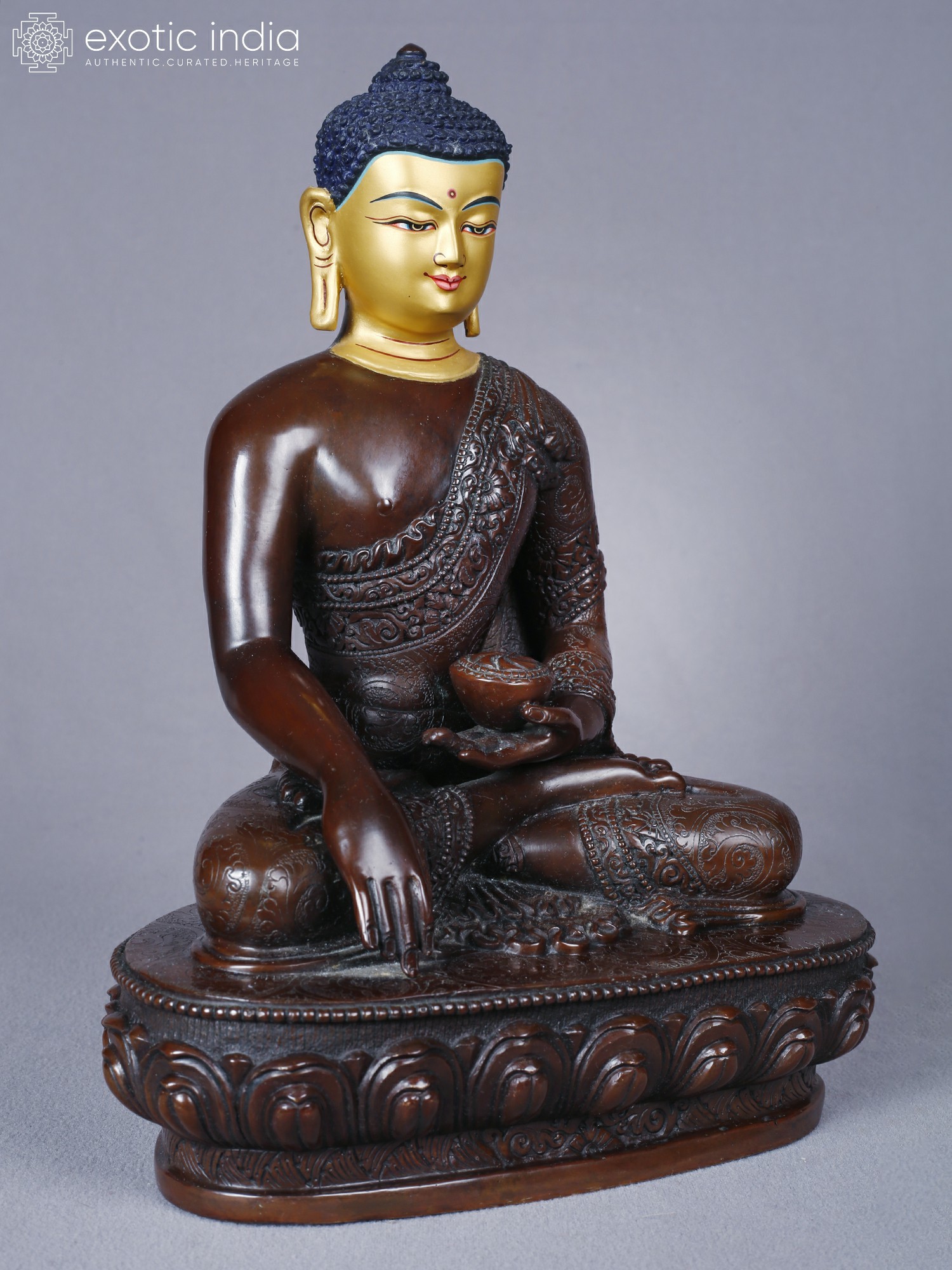 14" Shakyamuni Buddha Idol From Nepal | Copper Statue with Gold Finish