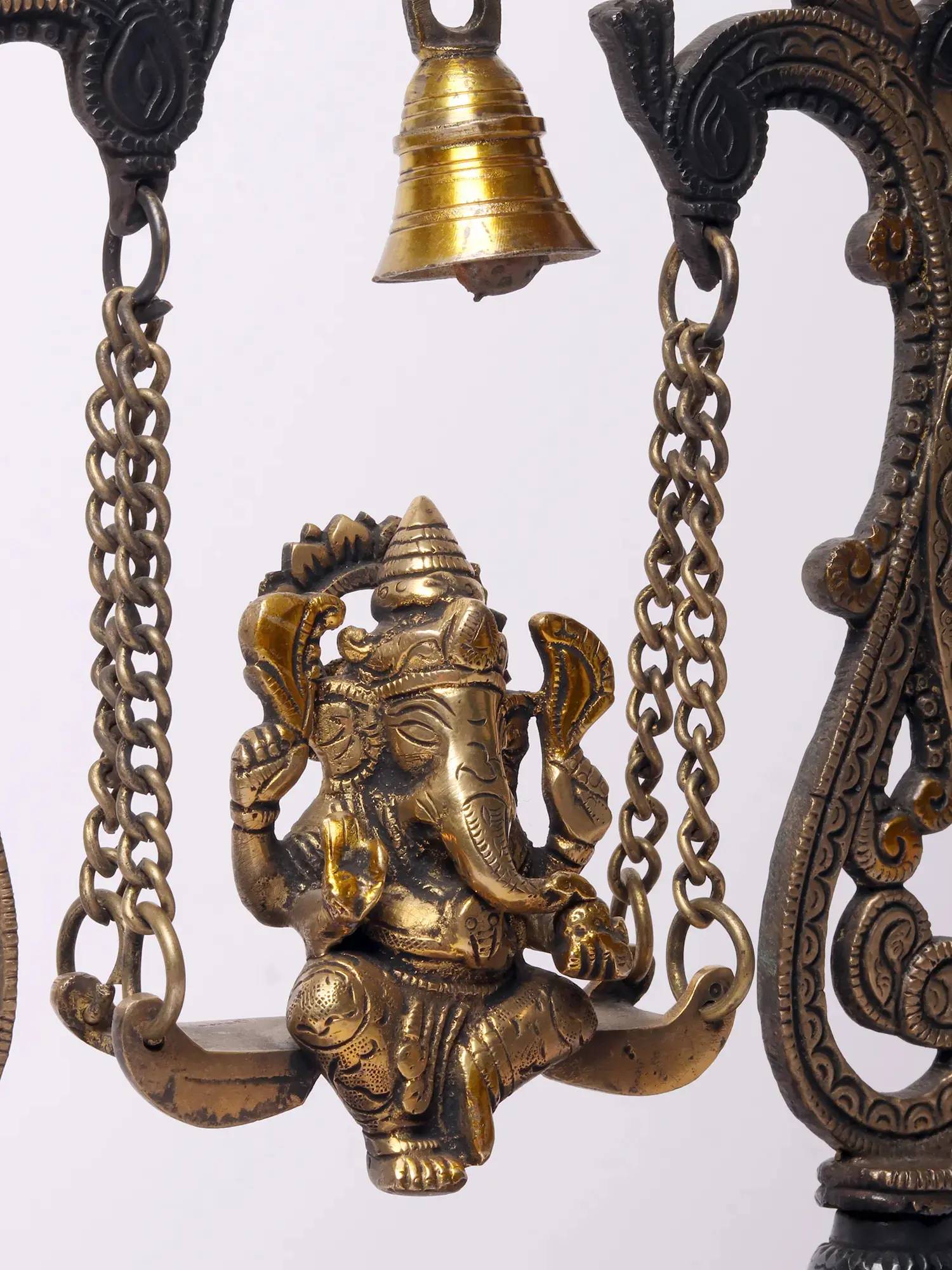 Lord Ganesha Brass Idol on Kirtimukha Swing with Dangling Bells