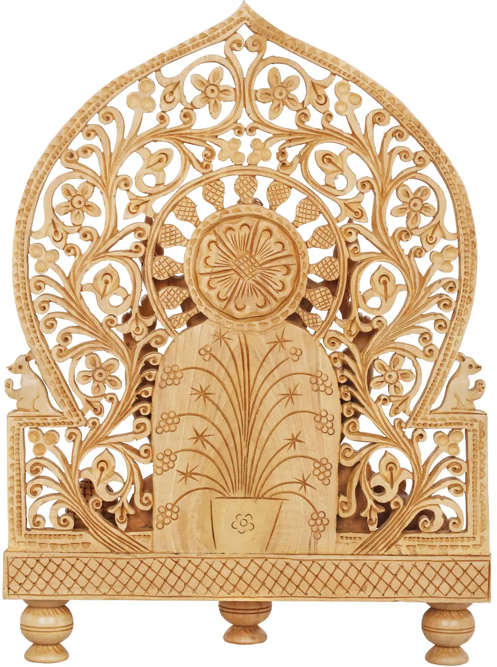 Each curve, each line, and every petal in this carving tells a story of dedication and artistry. The choice of wood, likely a hardwood chosen for its durability and ability to hold fine detail, has been treated to enhance its natural beauty, ensuring that this piece will be cherished for generations. The intricate patterns on the base and the delicate finials surrounding the arch demonstrate the artisan's mastery of traditional carving techniques. This statue is not merely an object of decor but a tangible connection to ancient Indian traditions and a celebration of the enduring power of faith and craftsmanship. It is a beautiful reminder to approach life with wisdom, perseverance, and a spirit of auspicious beginnings.
