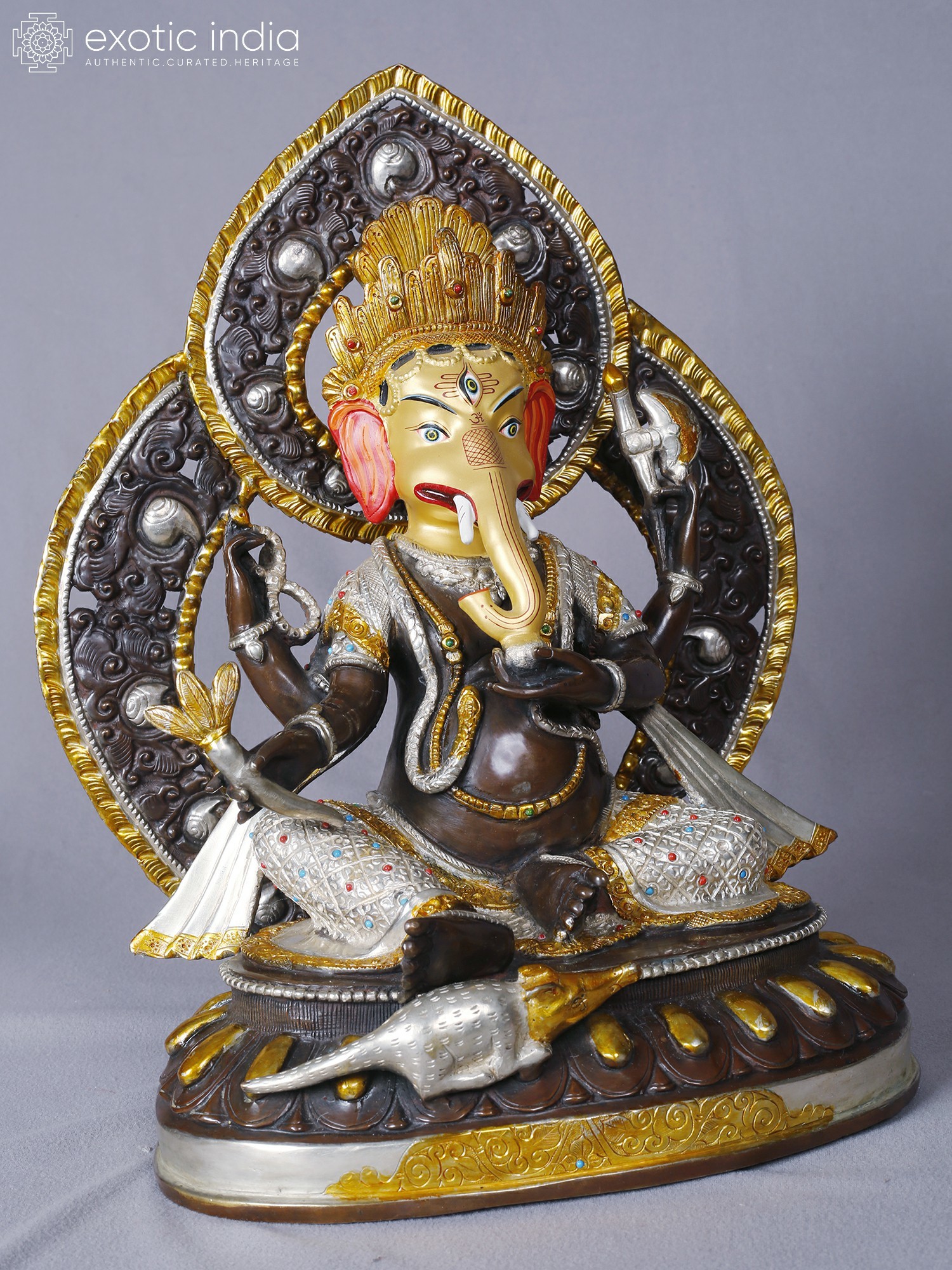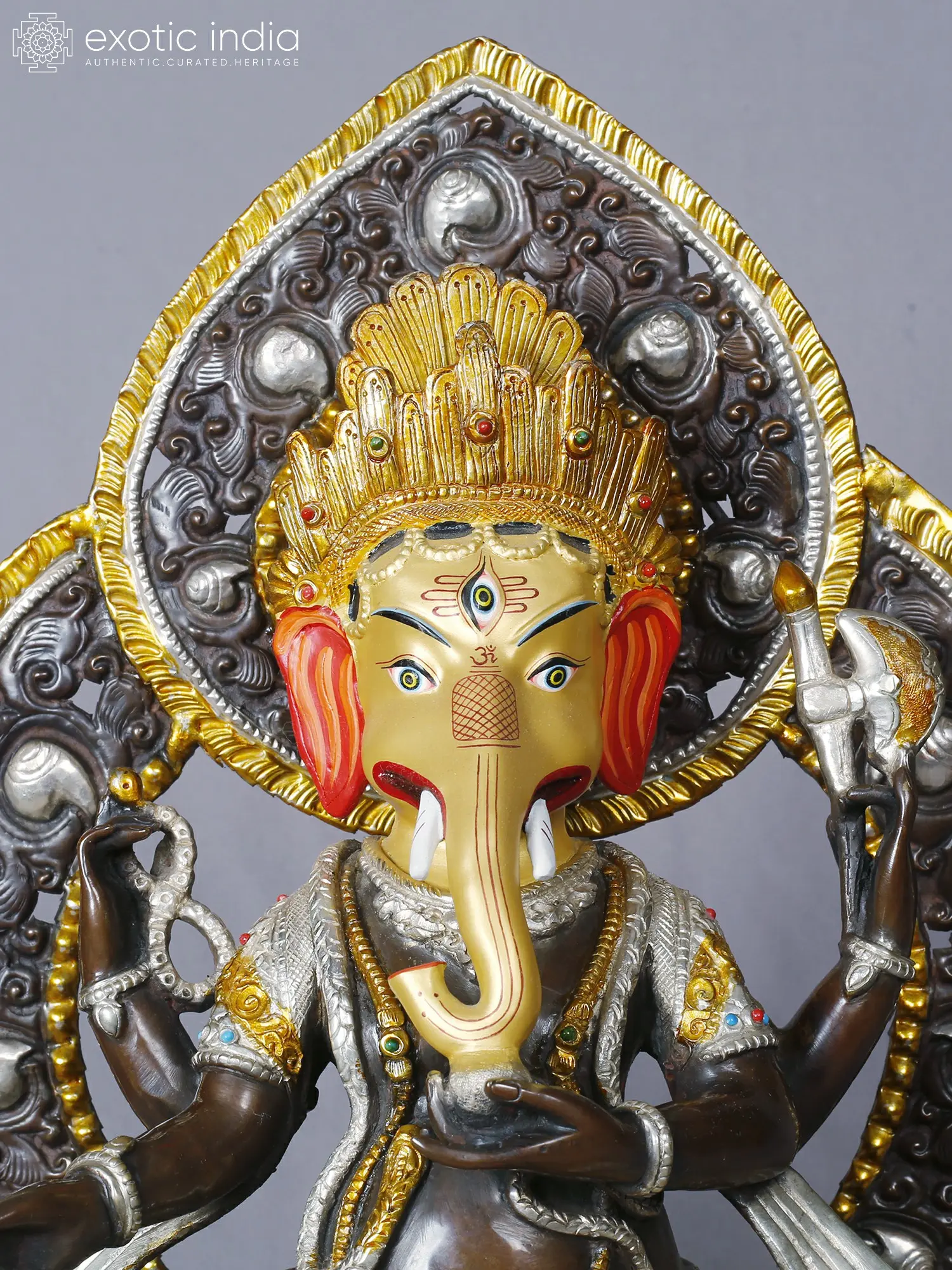 20" Brass Lord Ganesha Idol from Nepal | God Idol for Temple