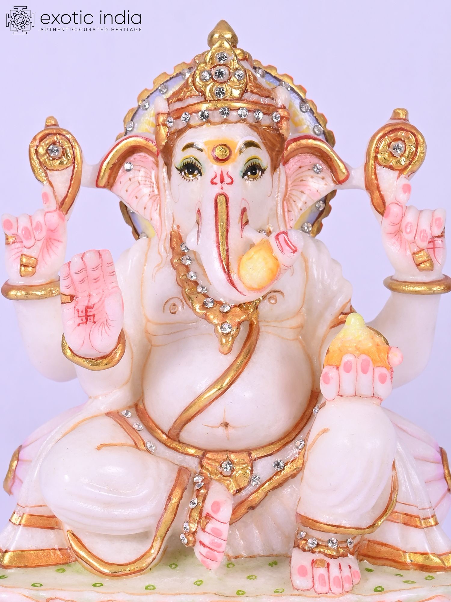 9" Sitting Lord Ganesha Statue | Handmade | Marble Ganesha Statue | Lord Ganesha Idol | Siddhi Vinayak | Ganpati