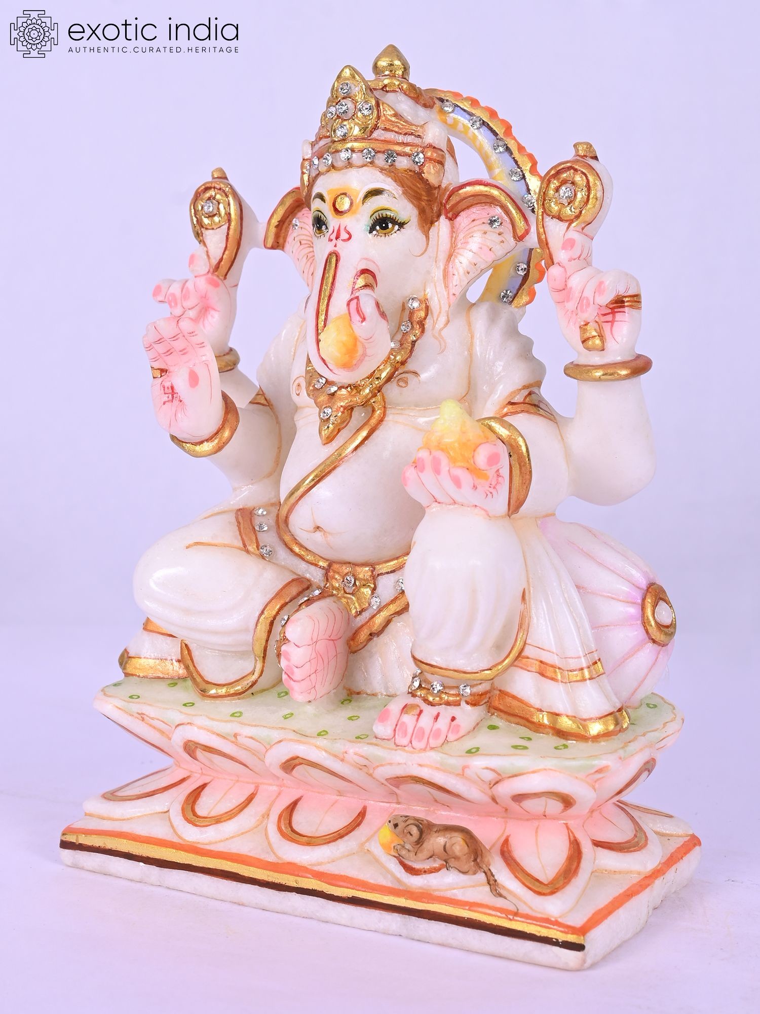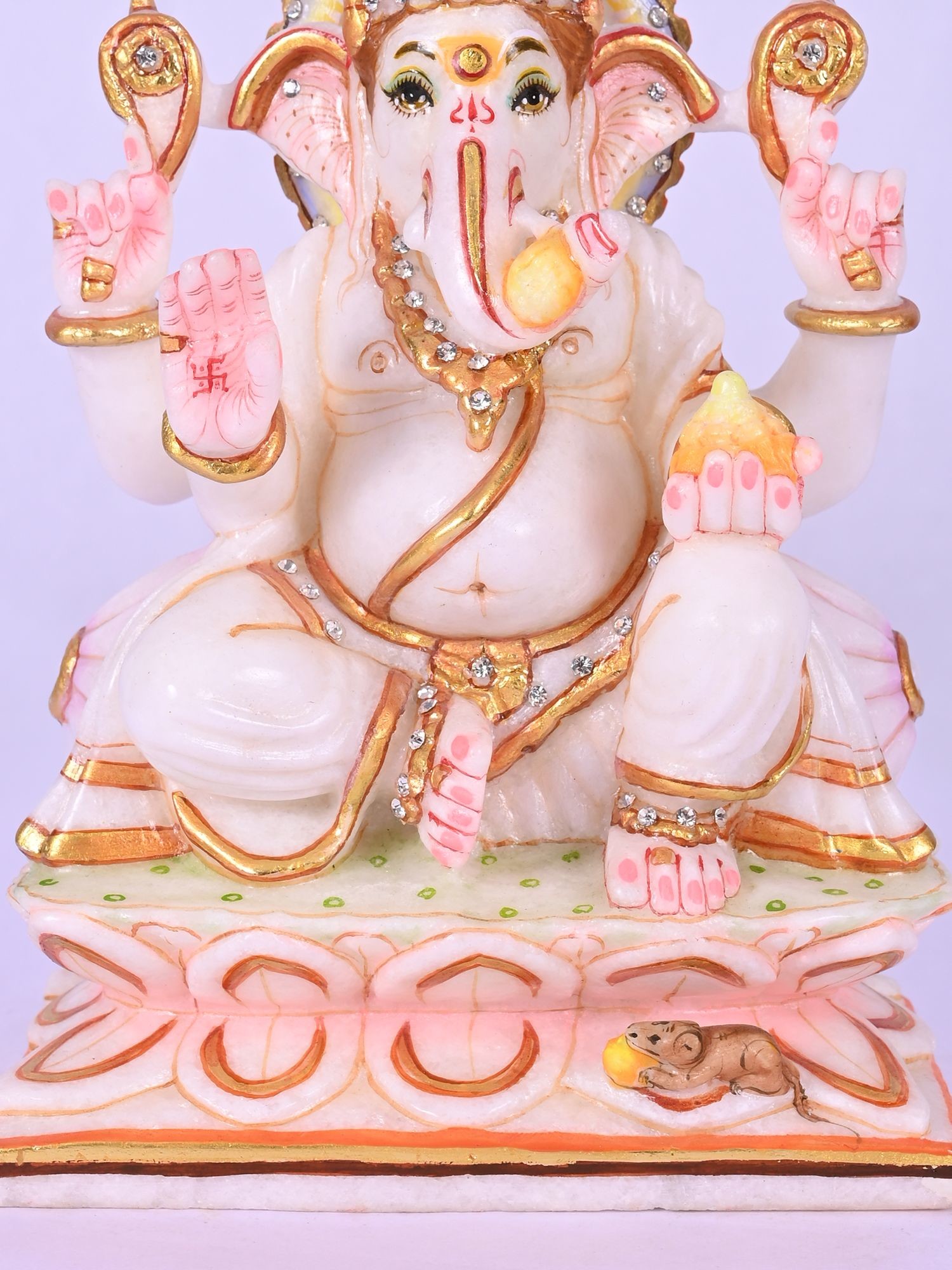 30" Lord Ganesha Statue with Mushaka | White Makrana Marble