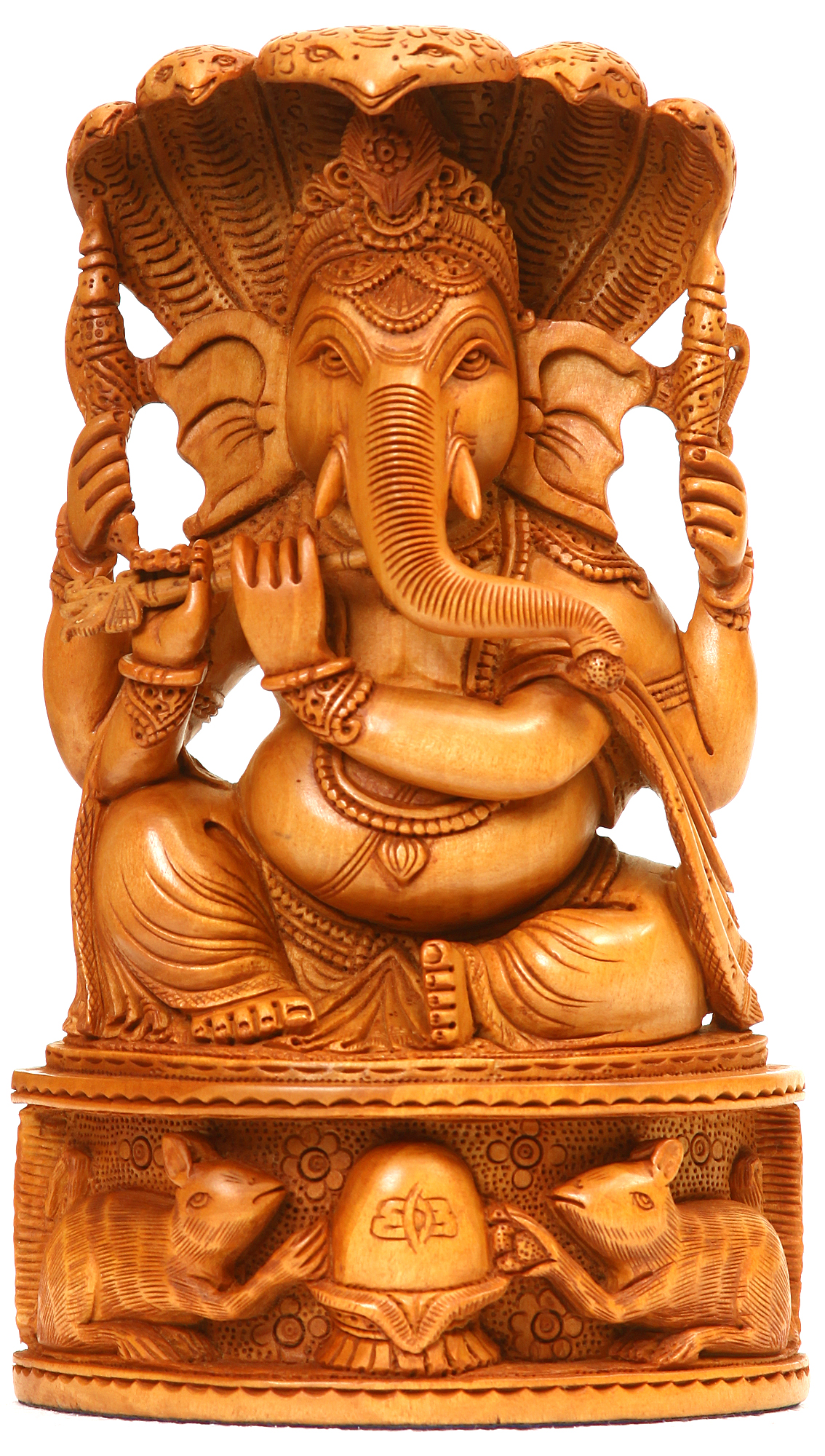 Lord Ganesha Playing Flute (Protected by Seven-Hooded Serpent)