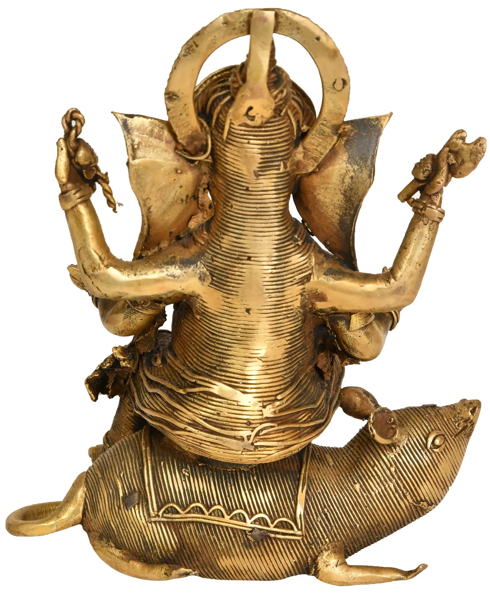 6" Lord Ganesha Riding on His Mouse (Tribal Statue from Bastar) | Handmade Brass Idol