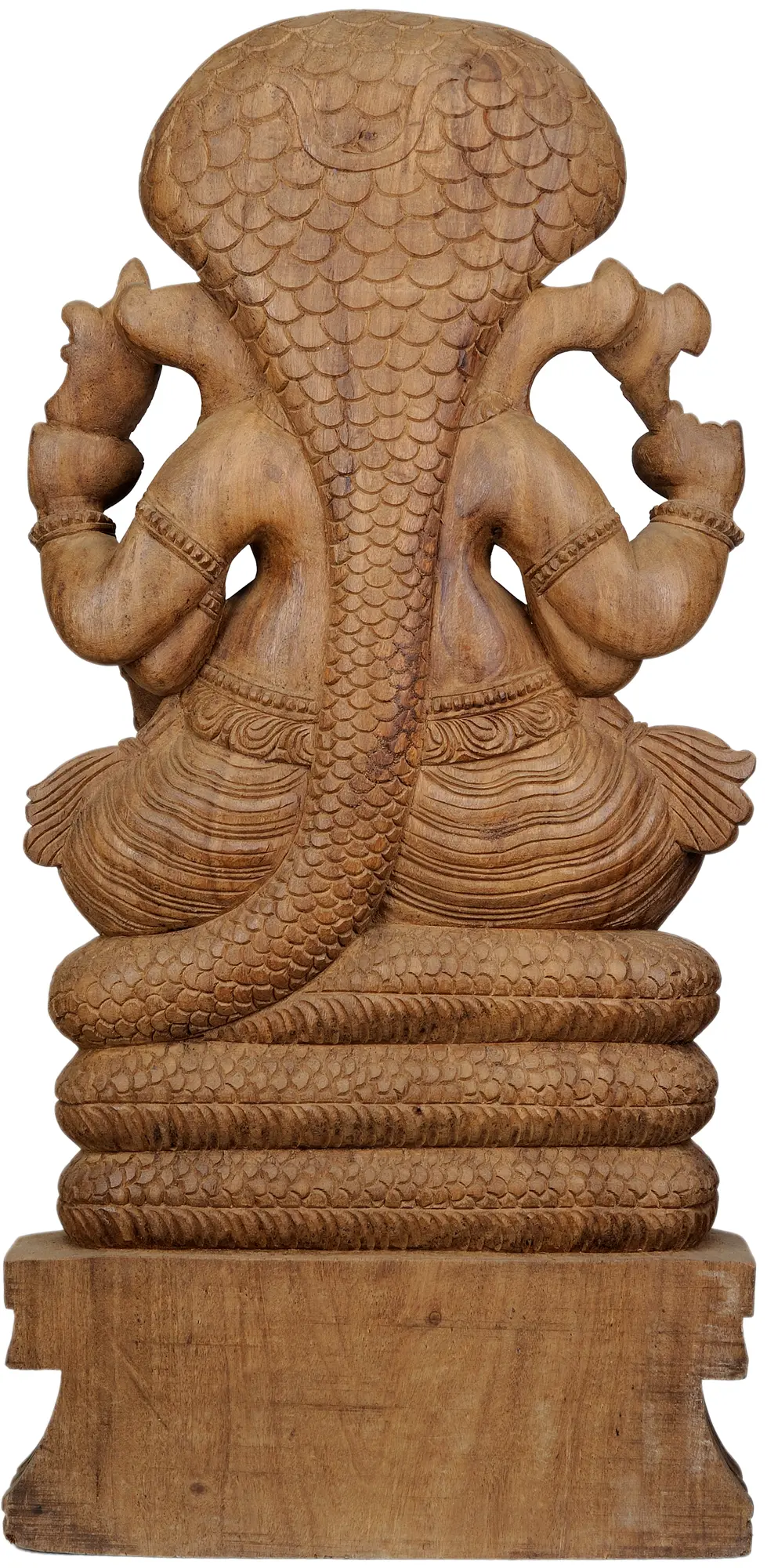 This iconography holds significant meaning within Hindu traditions, representing protection, power, and divine insight. The serpent, often associated with cosmic energy and protection, symbolizes the divine force that shelters and supports. Lord Ganesha, the elephant-headed deity, is revered as the patron of arts and sciences, the deva of intellect and wisdom, and the supreme god of beginnings, invoked at the start of rituals and ceremonies.