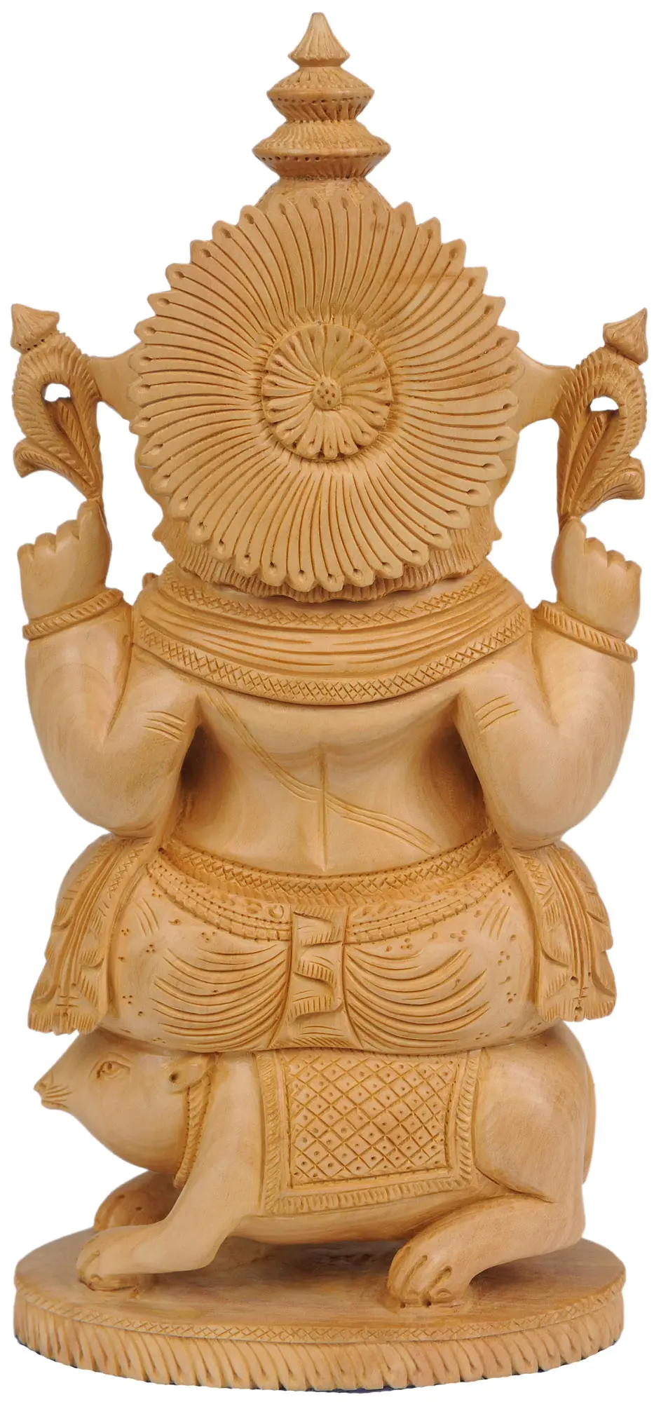 This statue has been handcrafted with care from Kadamba wood, known for its smooth texture and light color, by artisans from Jaipur, a city in India renowned for its traditional craftsmanship. The intricate detailing on the statue showcases the skill and dedication of the artisans who have passed down their craft through generations. This wood lends itself beautifully to carving, allowing for the creation of fine details in the deity's adornments, the folds of his clothing, and the texture of Mushika's fur. The statue emanates a sense of peace and serenity, perfect for contemplation and meditation. Place this piece on your altar, desk, or any special space to create a focal point for positive energy and spiritual connection. It's a beautiful reminder of the power of wisdom, perseverance, and the ability to overcome any challenge that comes your way.