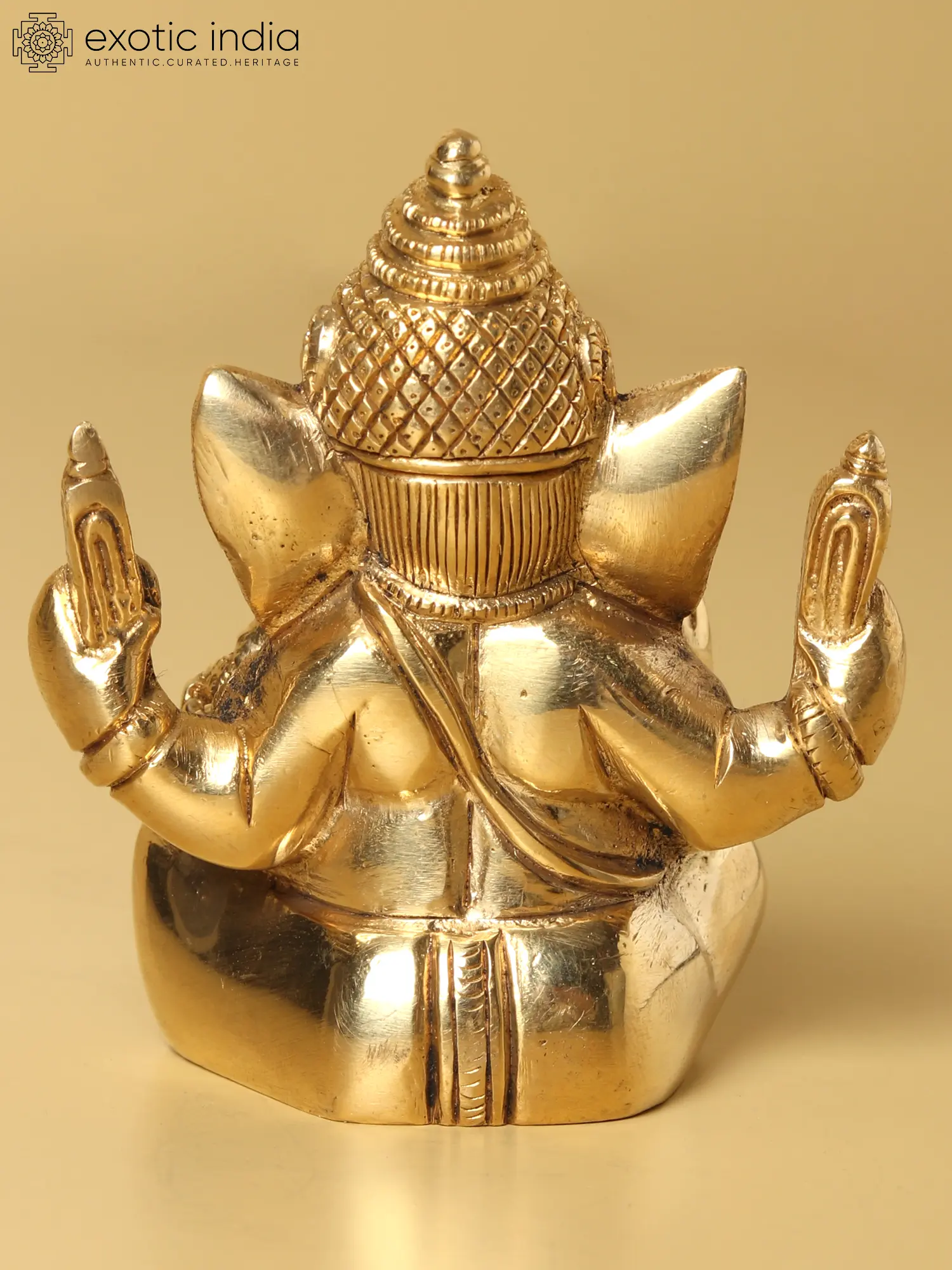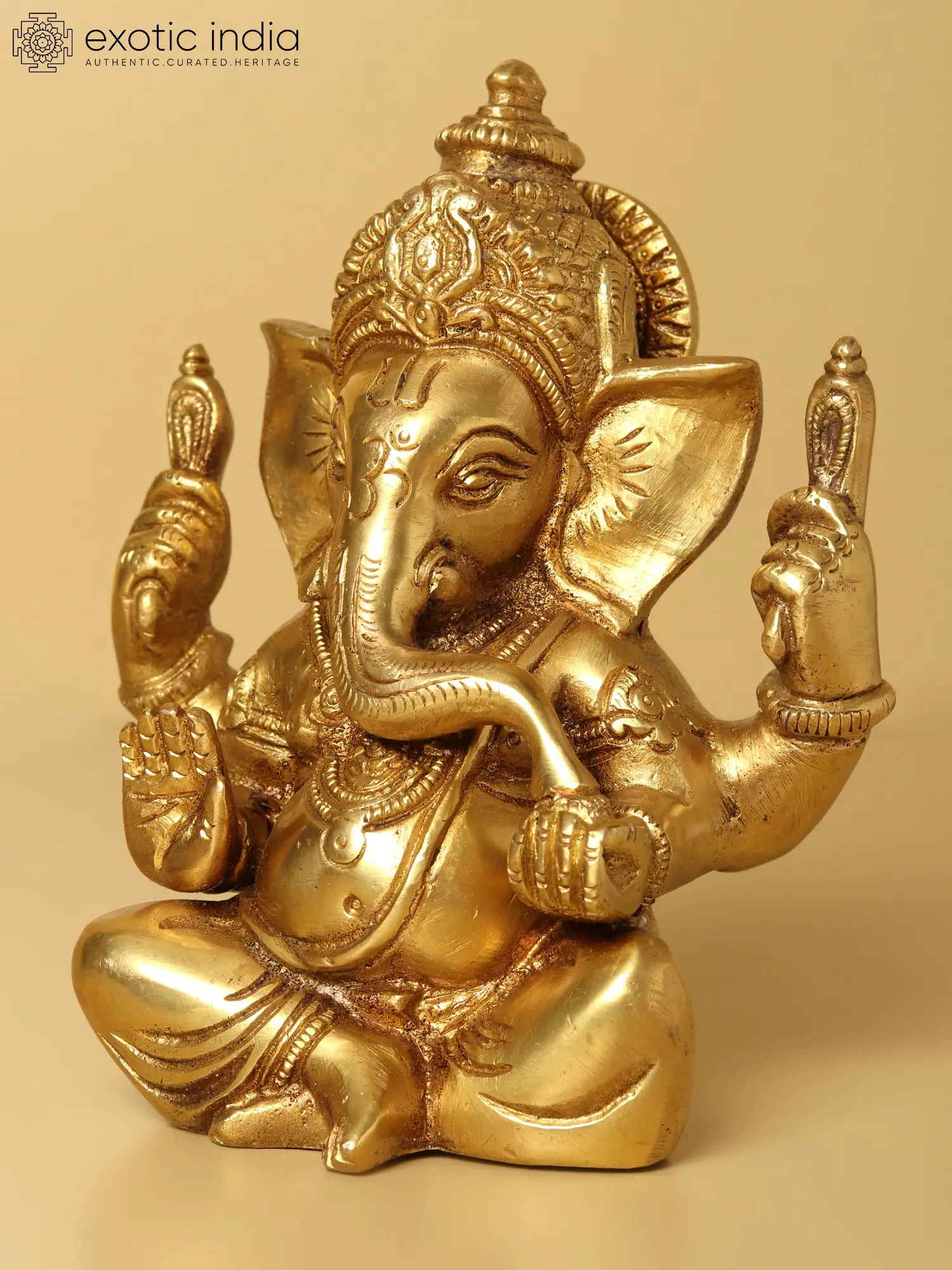 Seated gracefully, Lord Ganesha dons the “Ashirwad Mudra” (Gesture of benediction), radiating blessings and protection. His raised right hand symbolises bestowing boons upon his devotees, instilling them with positivity and fortune. In his upper hands, he delicately holds nooses, potent symbols of his ability to guide and redirect life’s path. With an elephant head denoting wisdom, Ganesha embodies intellect and discernment. This brass portrayal captures his essence as the remover of impediments and the source of prosperity. This artwork inspires you to navigate life’s challenges with confidence and embrace the opportunities ahead.