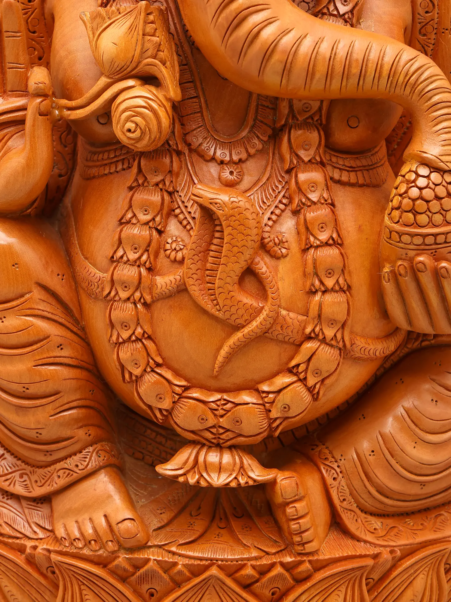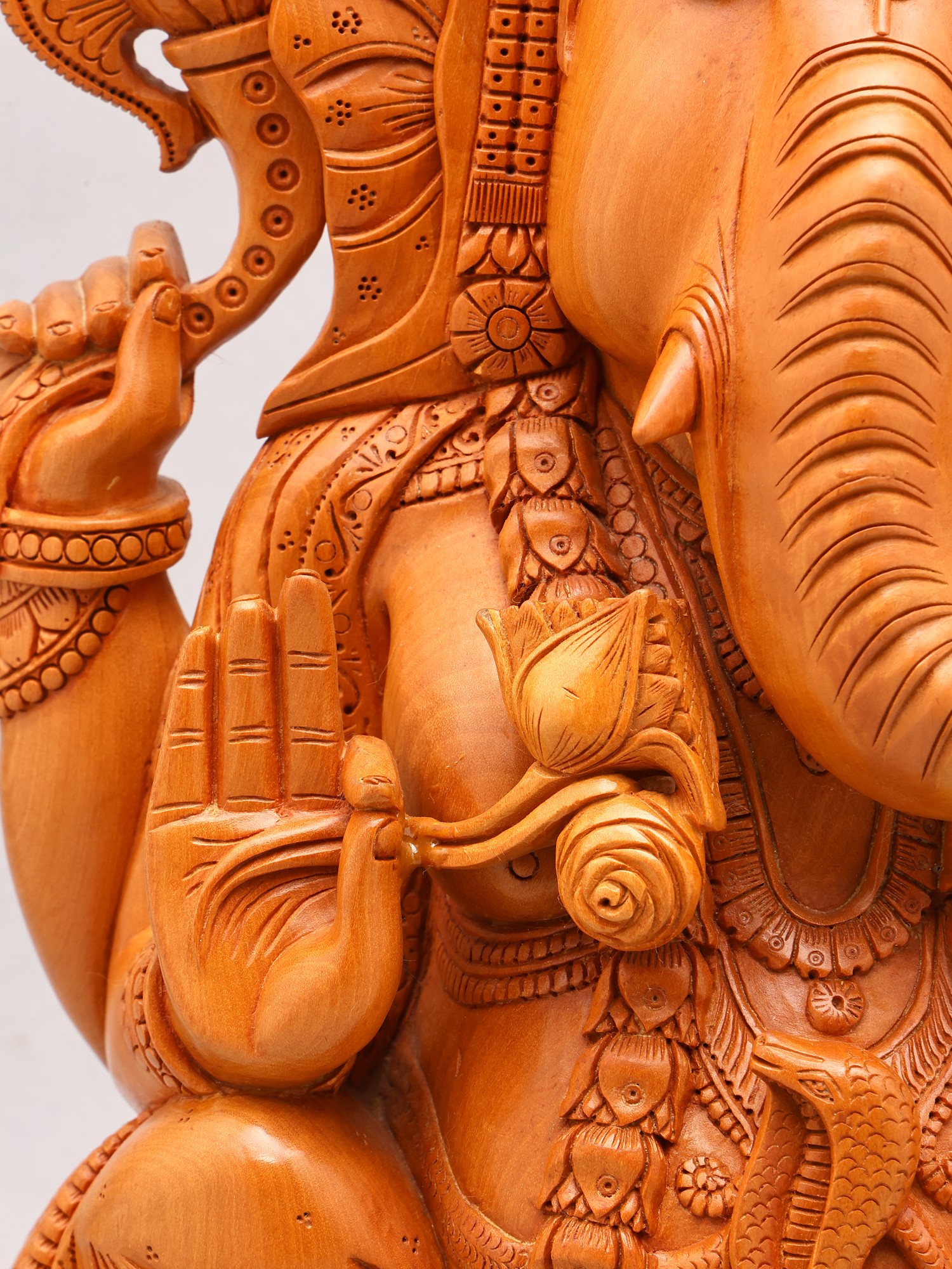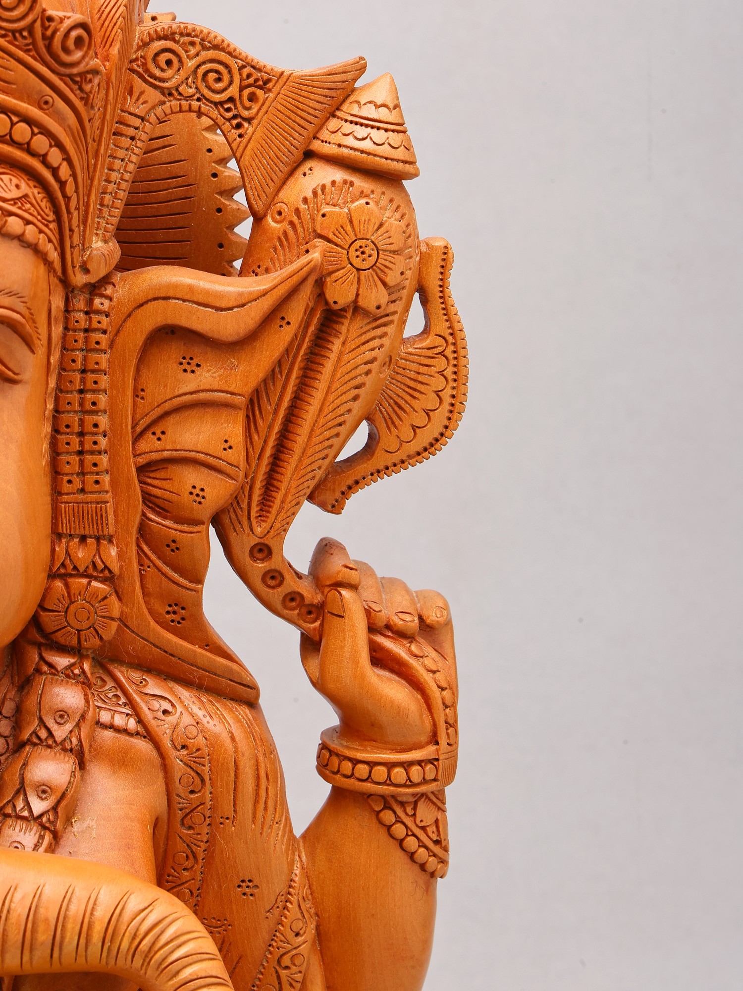 Wooden Sculpture of Lord Ganesha Plays the Shehnai