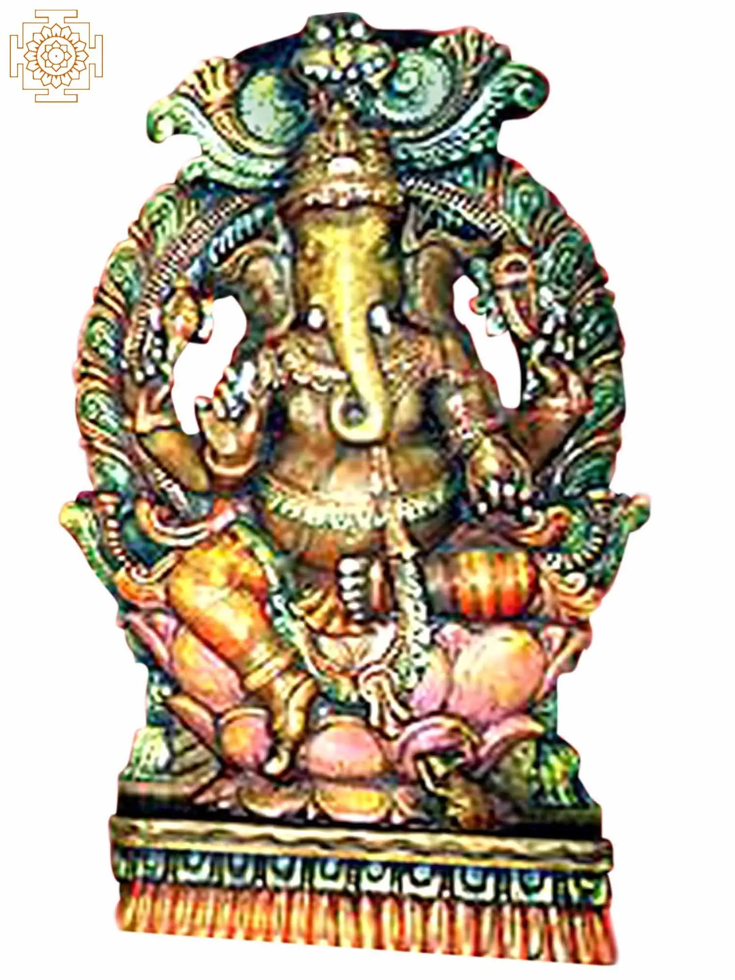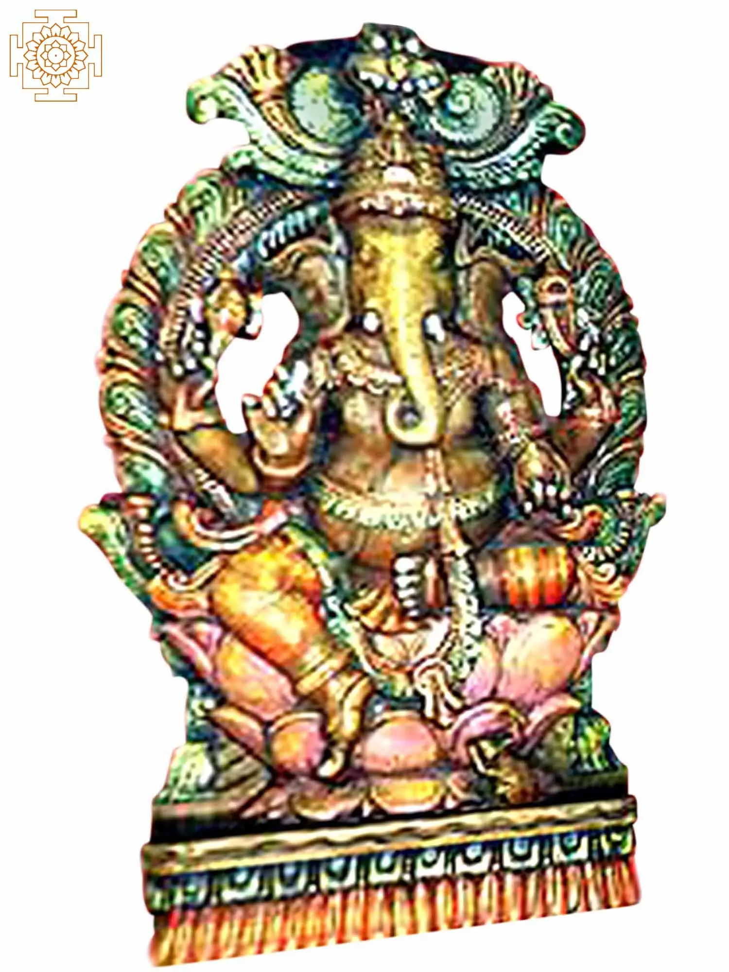 This impressive carving measures 3.0 feet in height, 1.8 feet in width, and 0.5 feet in depth, making it a substantial and eye-catching addition to any space. It can be displayed prominently in a puja room, living room, or entranceway. Consider placing it facing north, as this is considered an auspicious direction for Ganesha's energy. Whether you are a devotee seeking to deepen your spiritual practice or an art enthusiast appreciating cultural beauty, this temple wood carving is certain to enrich your home with its presence.