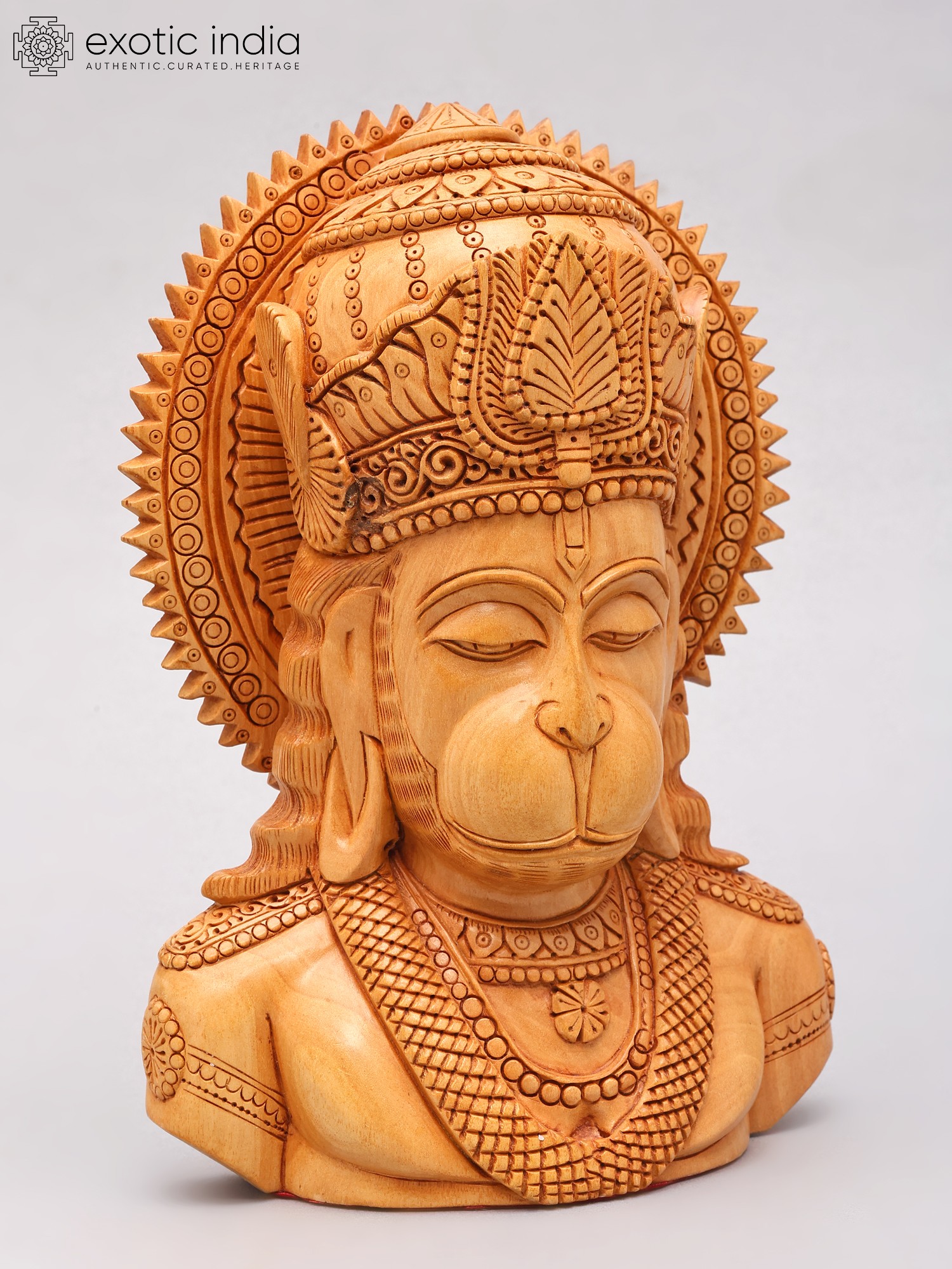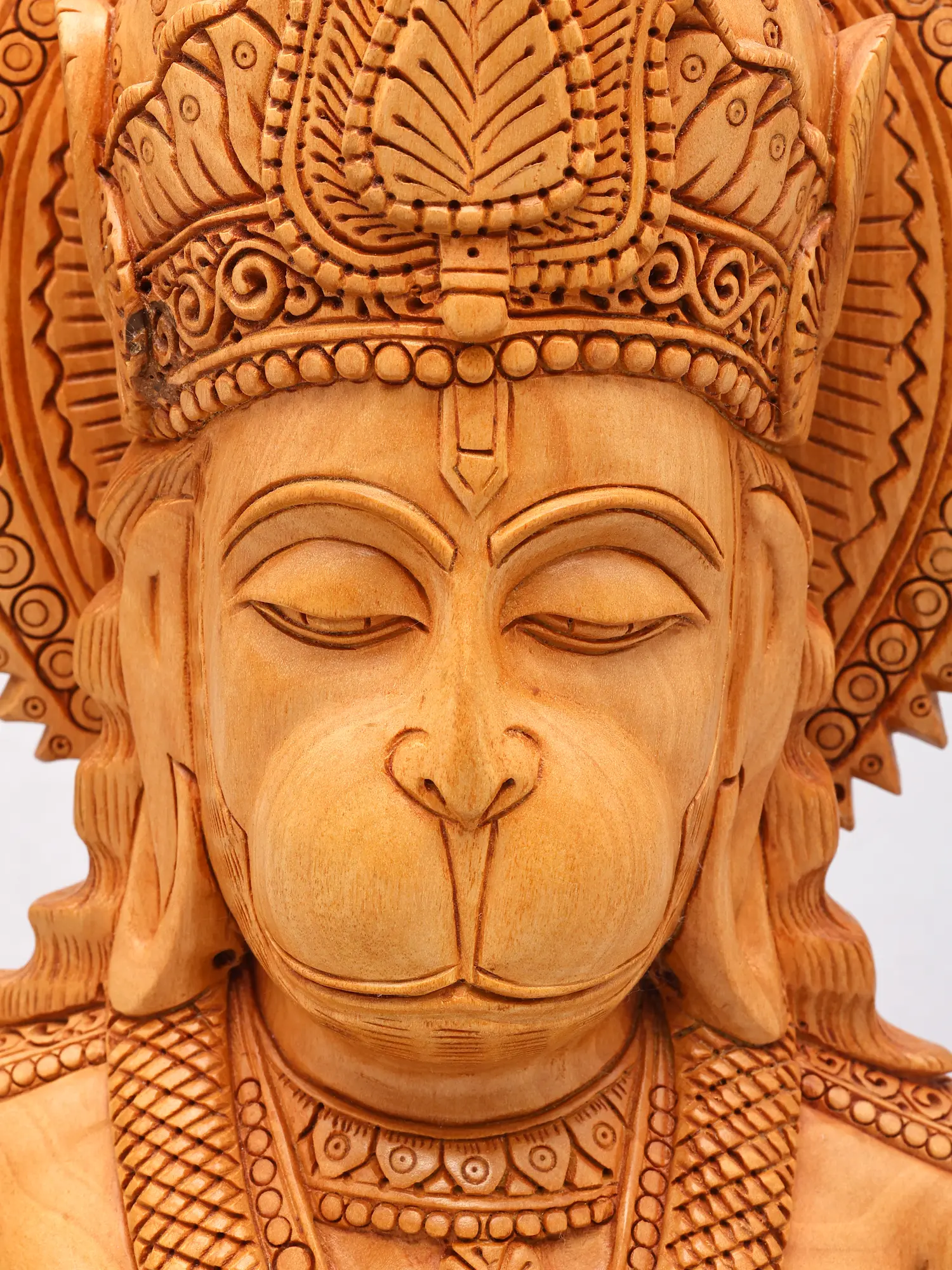 Lord Hanuman Blessing Wood Carving Statue | 10" Height