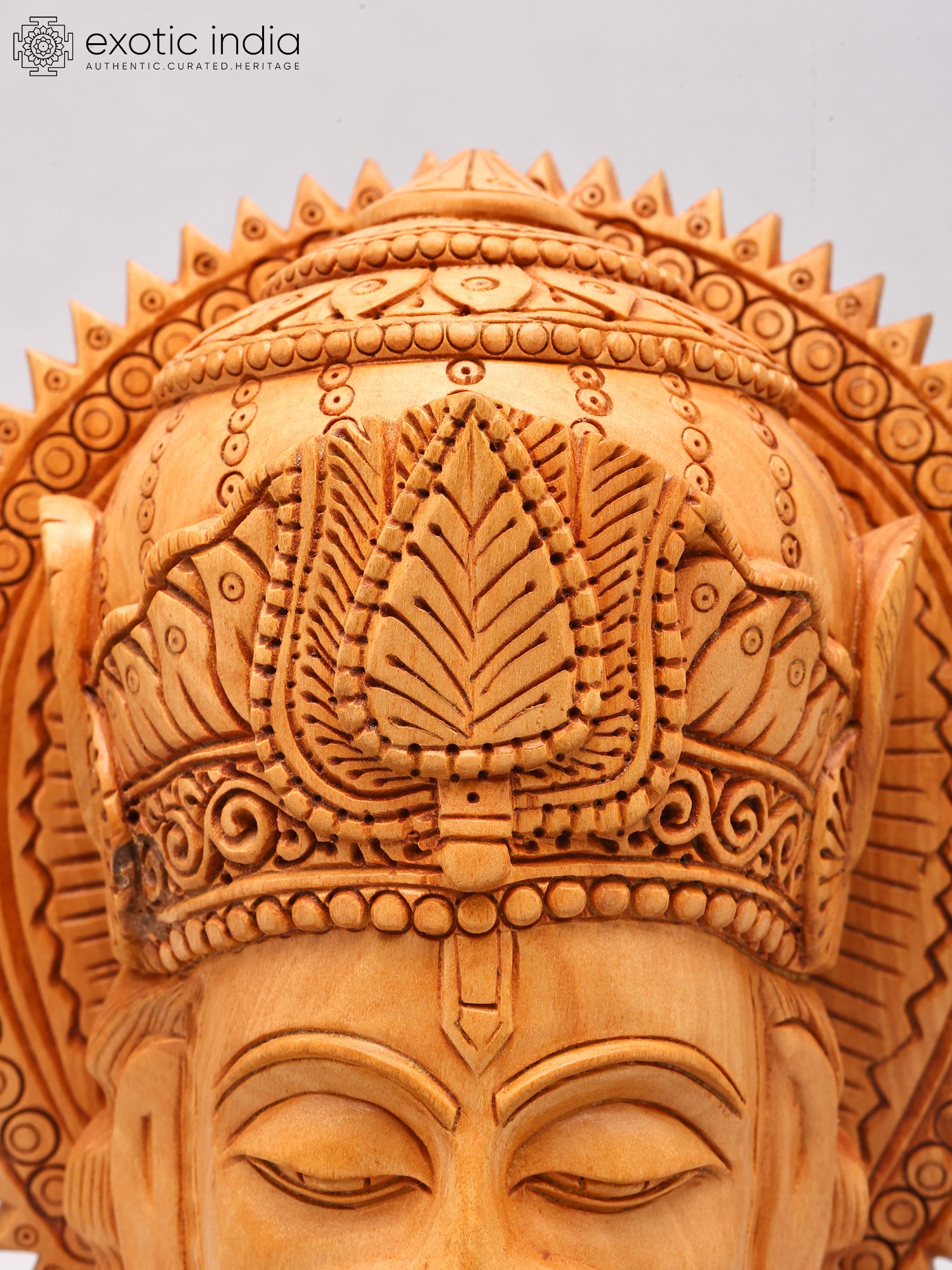 Five-Faced Hanuman Deity Sculpture - 24" Wood Carving with Intricate Prabhavali