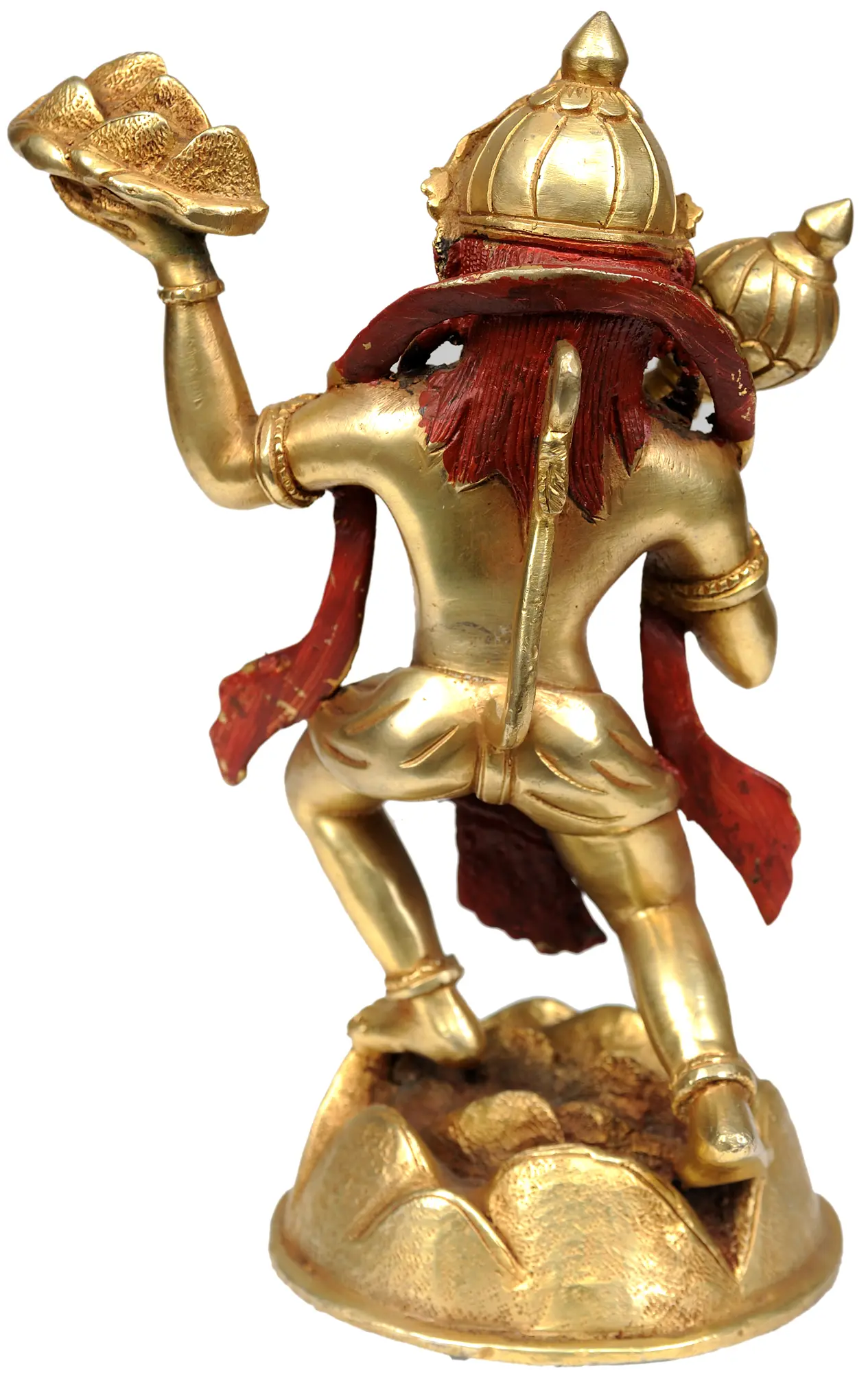 This statue is more than just an idol; it is a work of art that blends spiritual devotion with masterful craftsmanship. The use of copper as the base metal ensures durability and a substantial feel, while the application of 24 Karat gold gilding imbues it with a celestial glow that will endure for generations. The meticulous sculpting captures the expressive features of Hanuman, from his determined gaze to the divine aura that surrounds him. Each curve and contour is rendered with precision, reflecting a deep understanding of the iconography and the spiritual essence of this beloved deity. This piece serves as a constant reminder of the virtues that Hanuman embodies, inspiring those who behold it to cultivate similar qualities in their own lives. It is a perfect addition to any altar, meditation space, or as a cherished collectible that resonates with profound spiritual meaning.