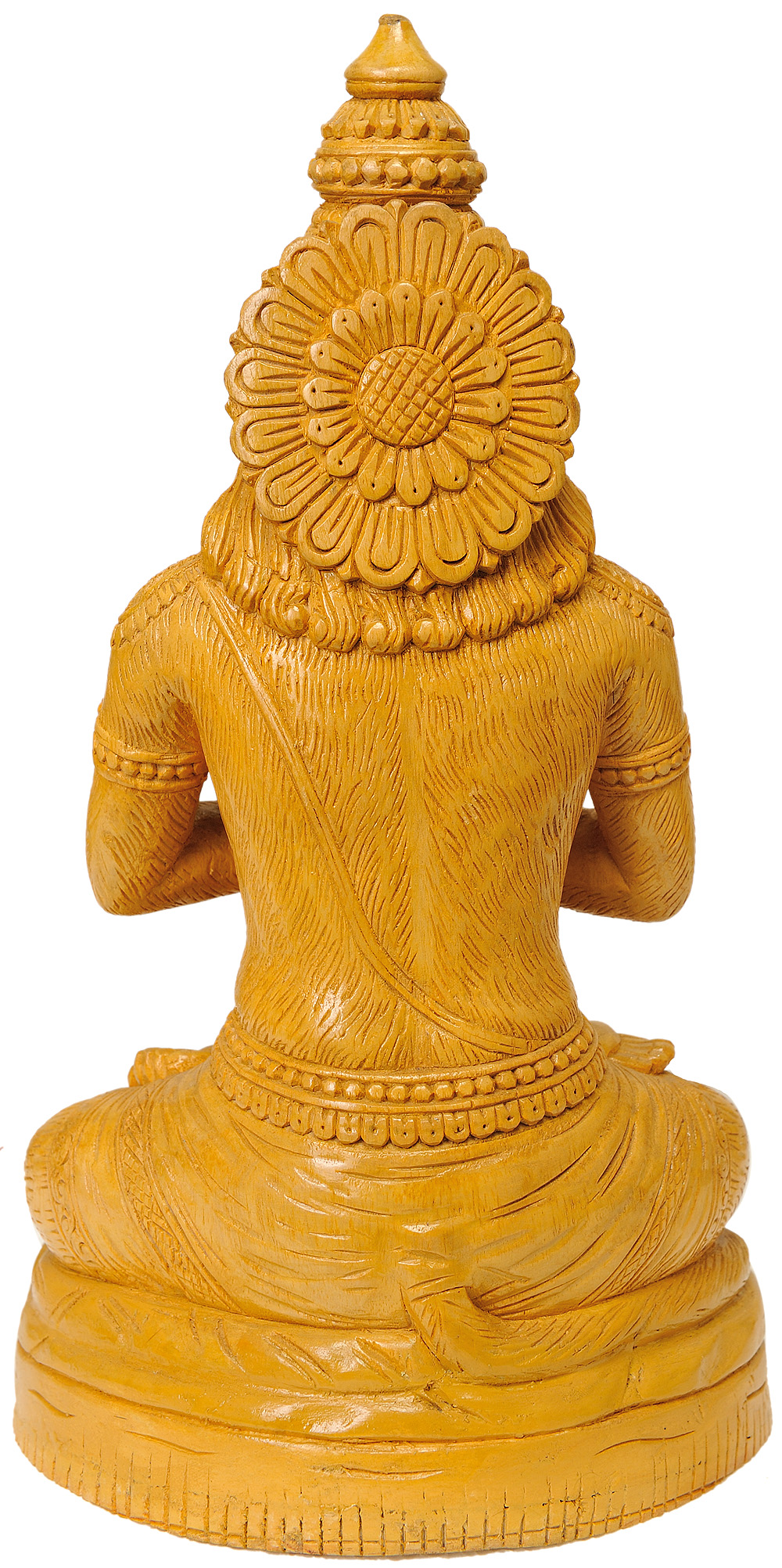 Embrace the spirit of unwavering devotion and immense strength with this exquisite wood carving of Lord Hanuman. Crafted from the finest White Cedar wood sourced from the verdant forests of Trivendrum, this sculpture captures the essence of one of Hinduism's most revered deities. The natural grain of the wood lends a warm, earthy tone to the carving, enhancing its spiritual aura and tactile appeal. This piece is more than just a statue; it is a tangible connection to ancient tales of valor, loyalty, and divine grace. The artistry of the craftsman is evident in every detail. Lord Hanuman is depicted in a seated posture, his hands clasped in a gesture of prayer and humility, a profound symbol of his devotion to Lord Rama. His features are finely rendered, conveying a sense of gentle wisdom and serene power. The elaborate crown adorning his head and the intricate garlands draped around his neck speak to the regal and divine nature of this celestial being. His muscular physique, subtly suggested beneath the carving, hints at the immense power that Hanuman wields, a power he consistently uses for righteousness and protection.