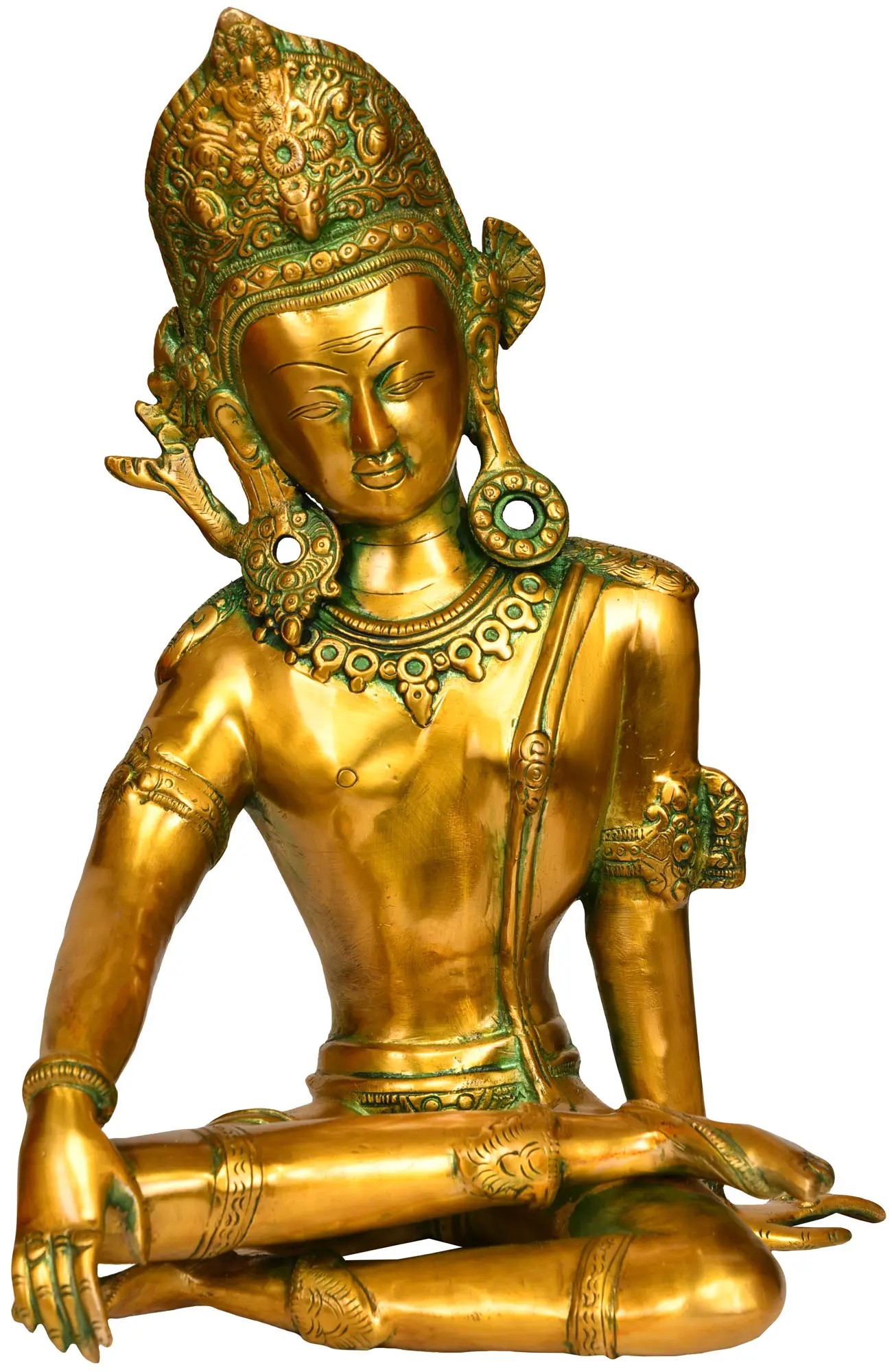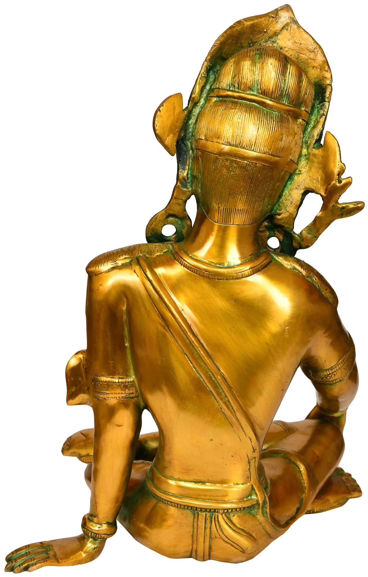 The artistry of this statue is a testament to generations of traditional Indian craftsmanship. Each element, from the intricate carvings on the crown and ornaments to the subtle rendering of the divine form, speaks of dedication and profound understanding of iconography. The traditional lost-wax casting method, likely employed in its creation, ensures a seamless and detailed finish, where every fold of fabric and every curve of jewelry is brought to life. The rich patina of the brass, developed over time and through careful polishing, adds depth and character, making this more than just a decorative item but a piece of heritage. The meditative pose, with legs crossed and a gentle tilt of the head, suggests a moment of contemplation or serene oversight. This depiction invites viewers to connect with Indra not just as a god of power, but also as a benevolent protector and a divine presence. The elaborate headdress, characteristic of celestial beings, signifies his supreme status, while the finely detailed armlets and necklaces speak of his divine adornments. The overall impression is one of profound peace and cosmic authority, a perfect representation for any sacred space or discerning collection.