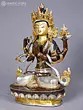 Buddhist Deity Lord Manjushree Idol | Copper with Gold Plated | Handmade Exquisite Art