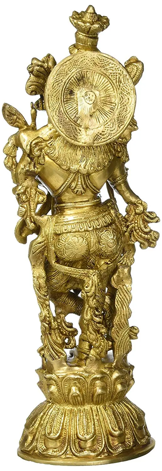 Lord Krishna's stories are woven into the fabric of Indian culture, inspiring millions. From his playful childhood antics in Gokul to his profound teachings on the battlefield of Kurukshetra, Krishna represents a multifaceted divine being who connects with devotees on every level. His association with the flute signifies the cosmic sound vibration, *Nada Brahma*, the divine music that sustains the universe. The peacock feather represents spiritual elevation and the beauty of the divine. Placing this statue in your home or puja room is believed to invoke blessings of prosperity, good health, love, and spiritual growth. It serves as a constant reminder to live a life of dharma (righteousness) and to seek the divine in everyday moments. This brass statue is an ideal gift for housewarmings, weddings, or any occasion where blessings and positive energy are desired. It is a cherished piece that can be passed down through generations, carrying with it the legacy of devotion and divine inspiration.